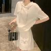 2025 Verano Nuevo Celebridad de Internet Adelgazante Look y Reductor de Edad Moda de Alta Gama Casual Deportivo para Correr Traje de Pantalón de Manga Corta Blanco para Mujer