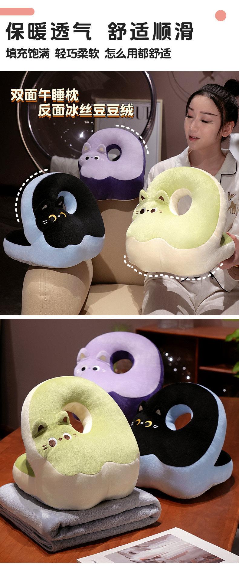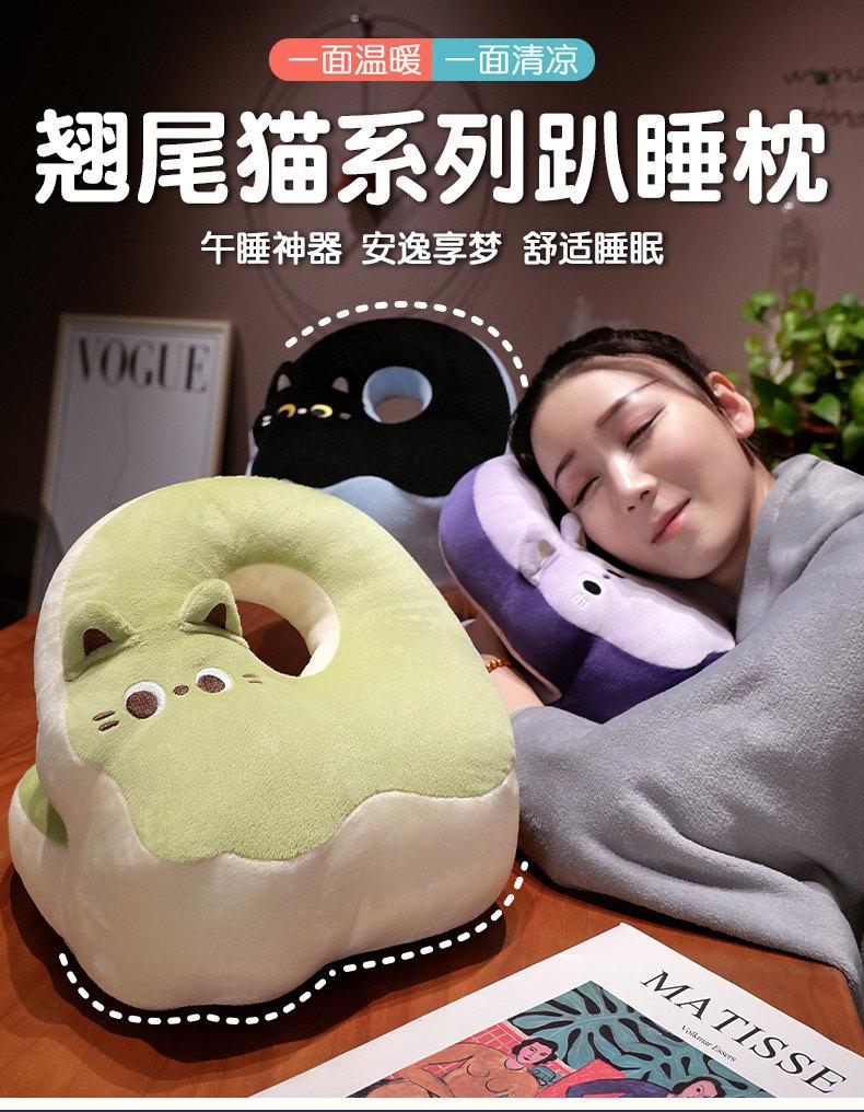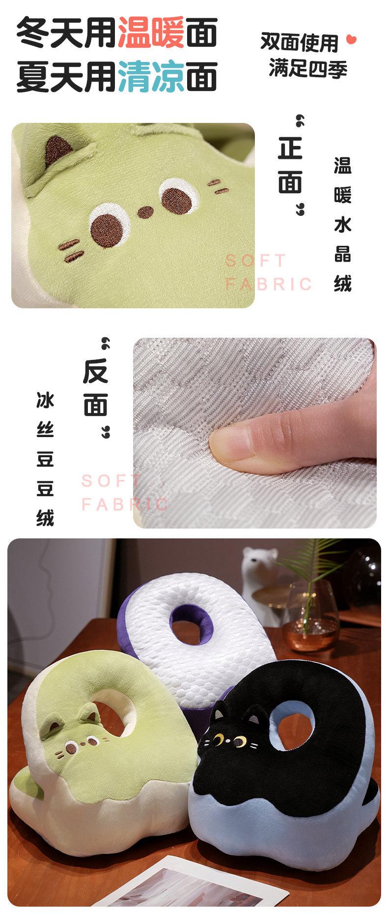 Double-sided matcha green cat sleeping pillow 26x28x25cm0.38, Double-sided black cat sleeping pillow 26x28x25c...