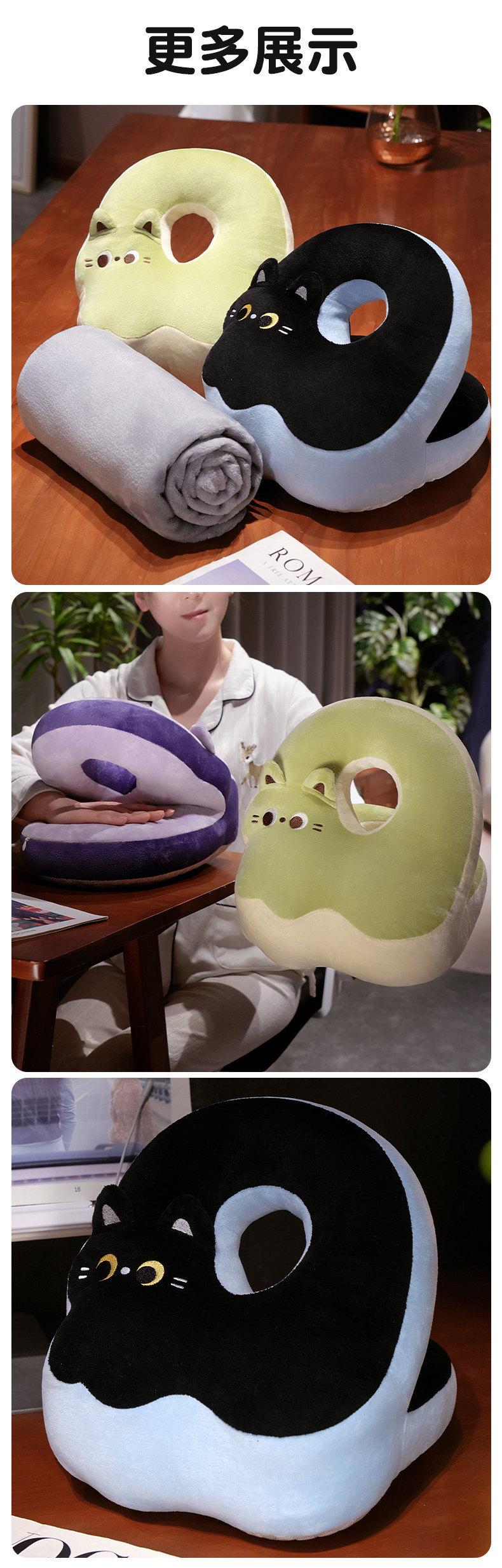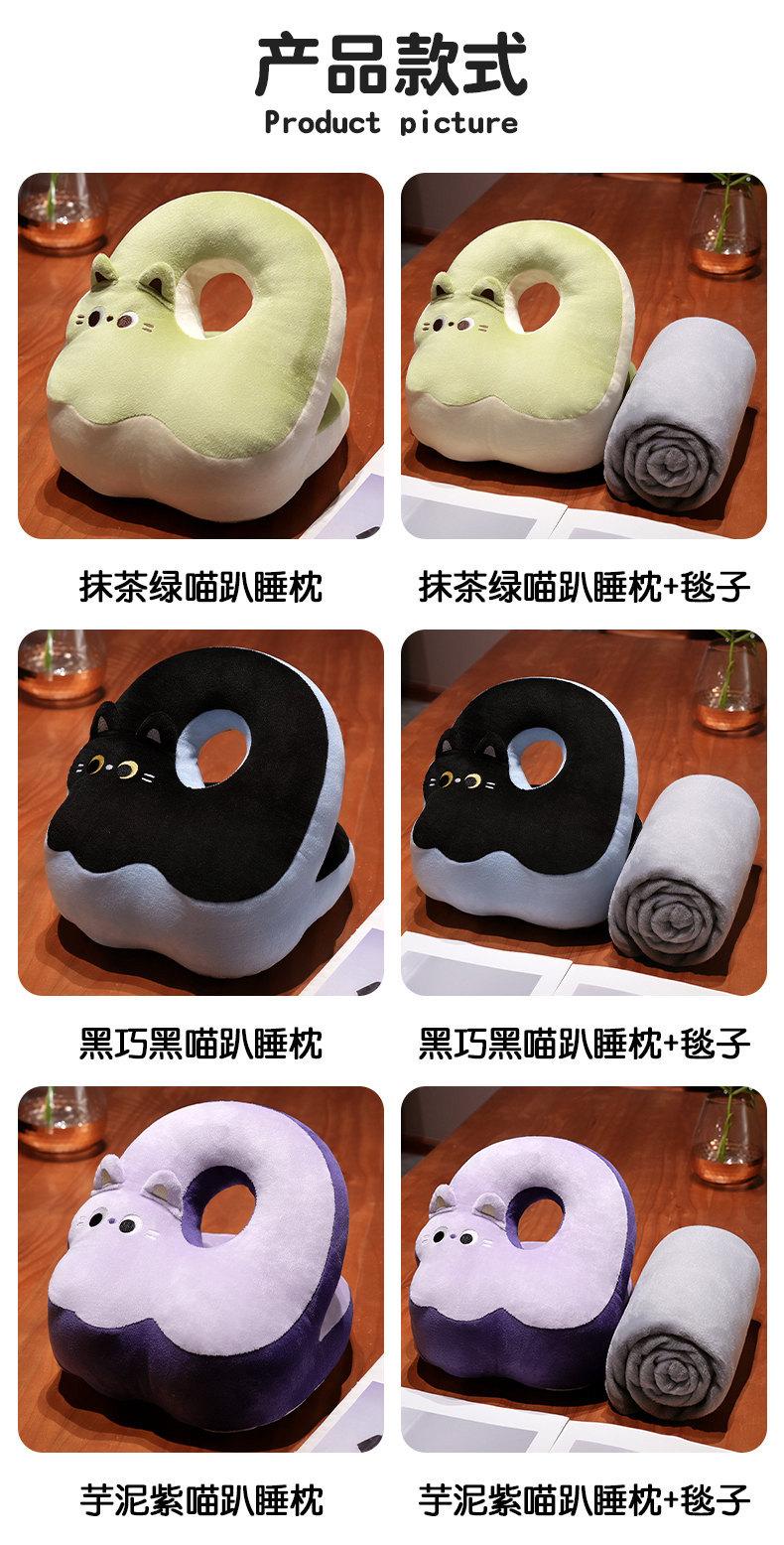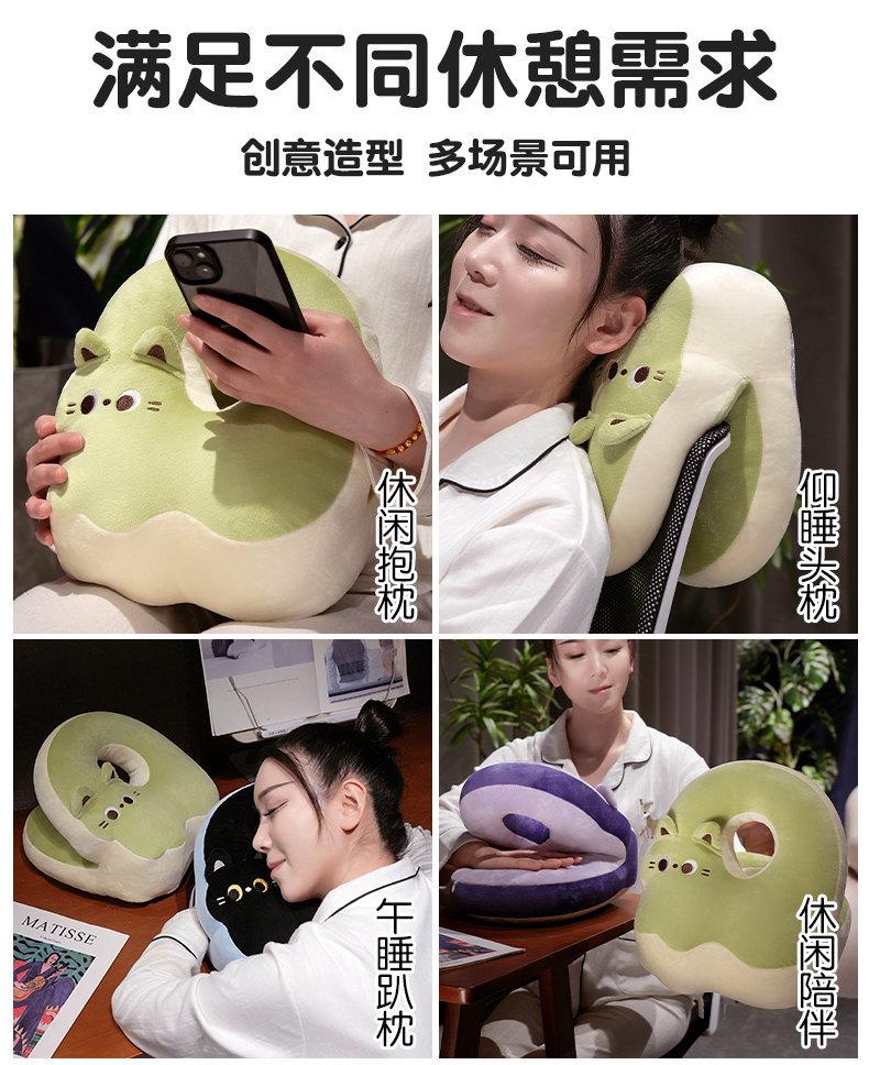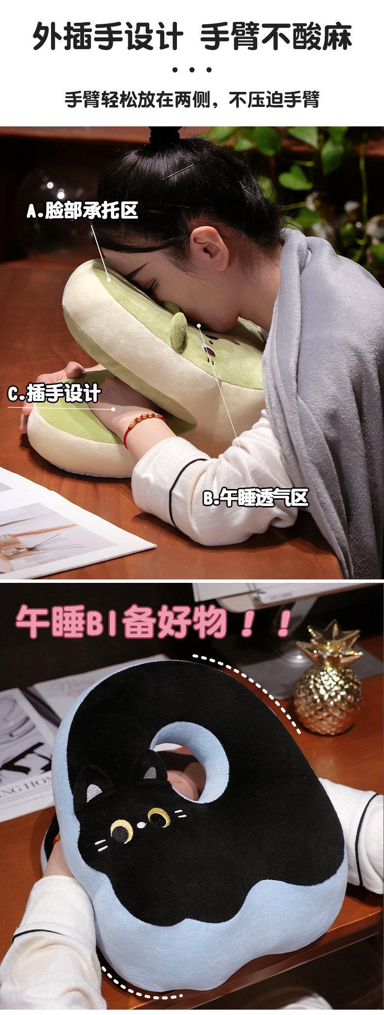 Double-sided matcha green cat sleeping pillow 26x28x25cm0.38, Double-sided black cat sleeping pillow 26x28x25c...