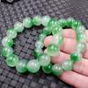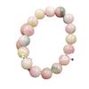 Pulsera de jade con borde de piedra, pulsera de jade de flor de durazno con cuentas redondas, pulsera de jade de cuarcita rosa con cuentas redondas, pulsera de 12 mm, joyería de mano de jade