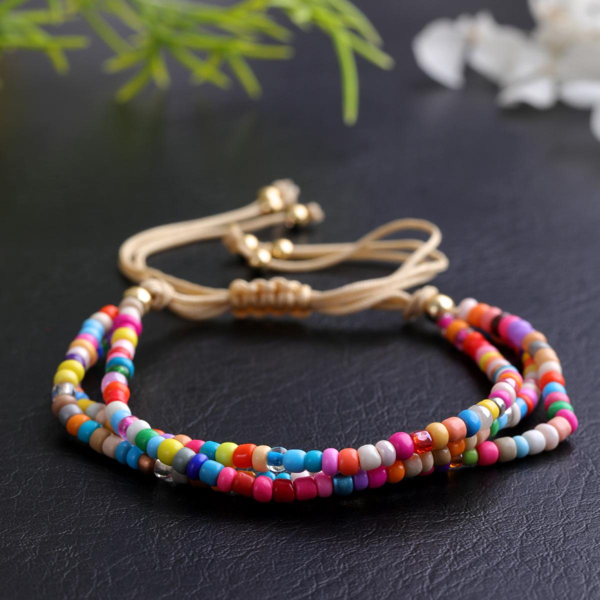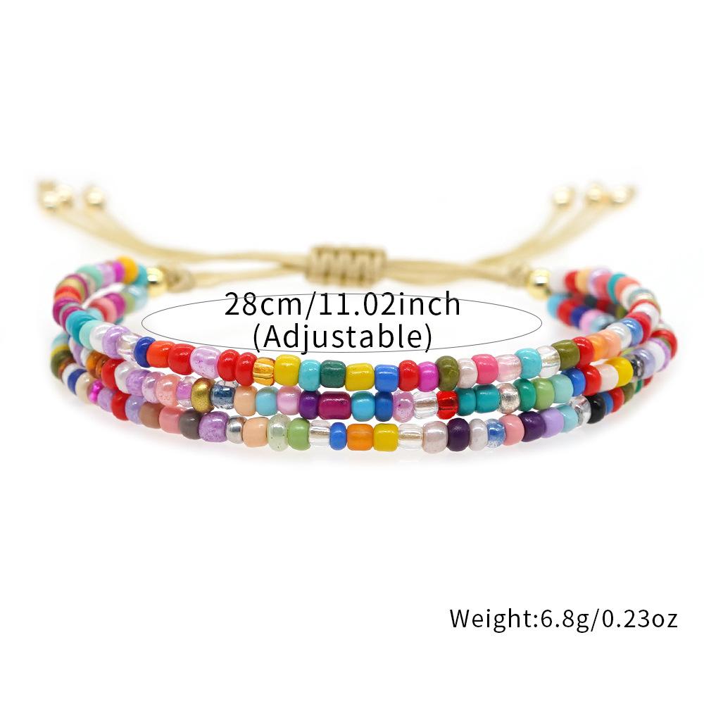 Pulsera Colorida de Cuentas de Arroz Combinación de 3 Círculos Traje Accesorios Multicolor de Moda de Verano para Mujer Pulsera Ajustable de Uso Moderno