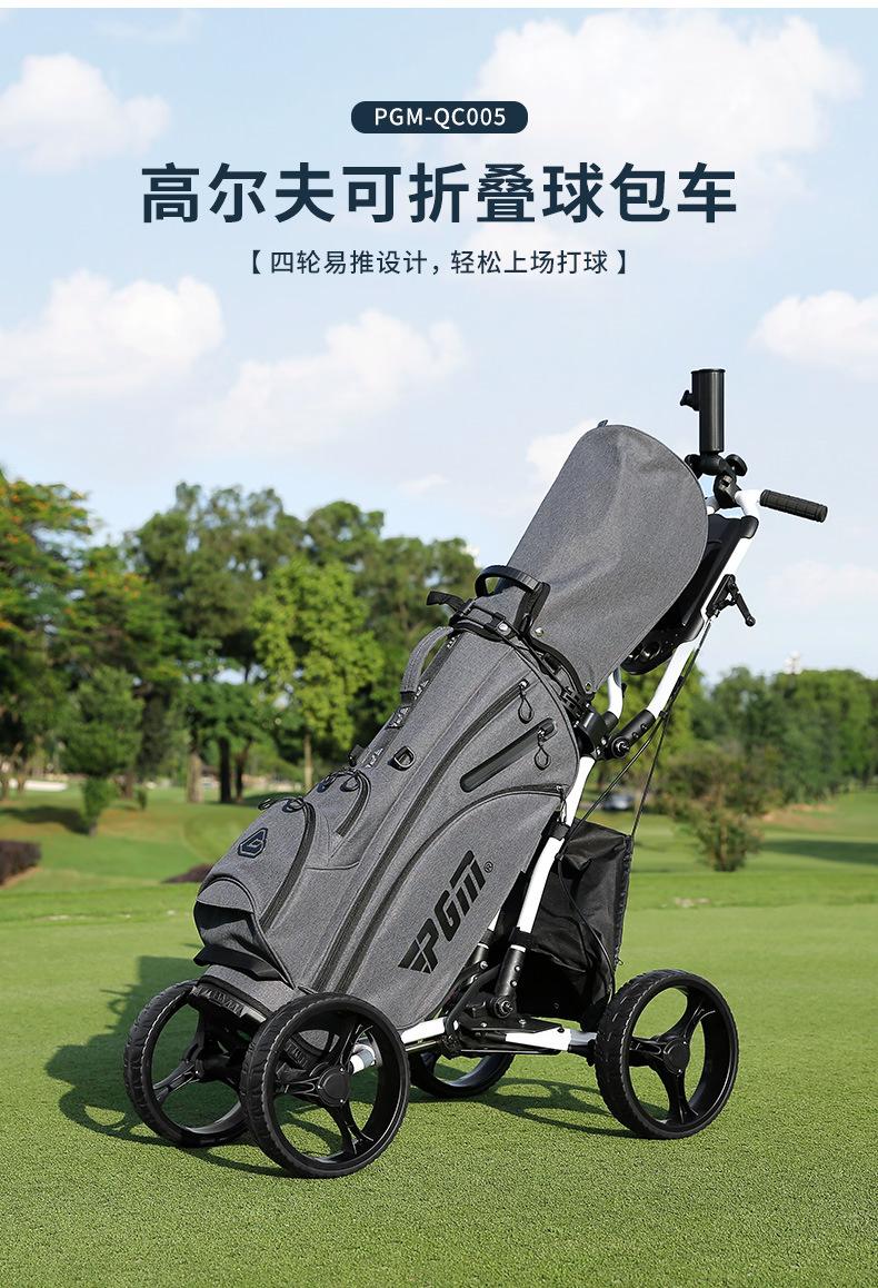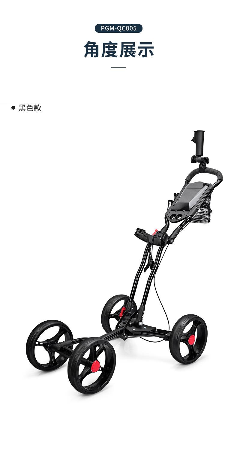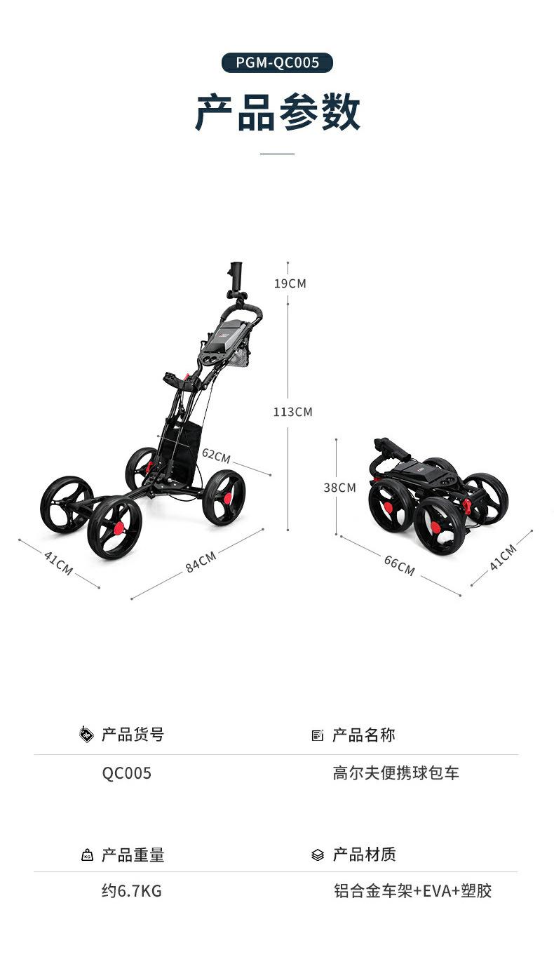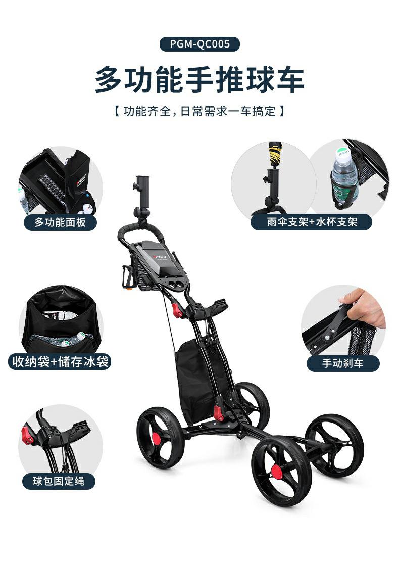 Pgm Golf Carro de Bolas Plegable de Cuatro Ruedas Trolley Soporte para Paraguas Soporte para Botella de Agua Freno Manual Carro de Bolas