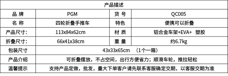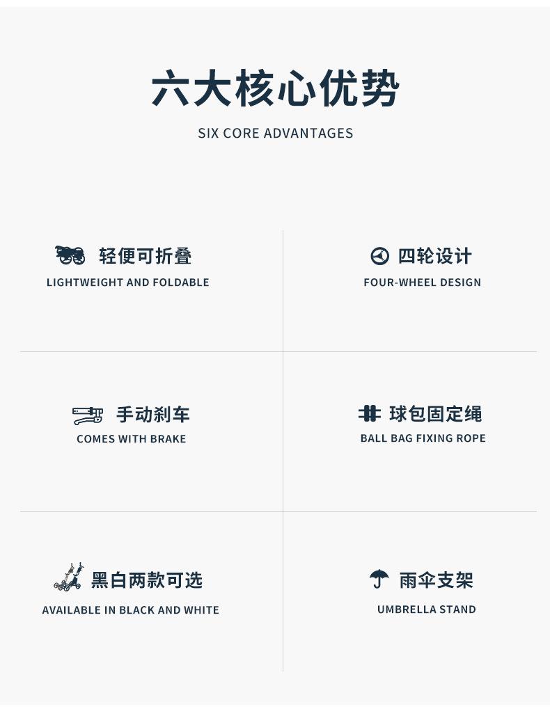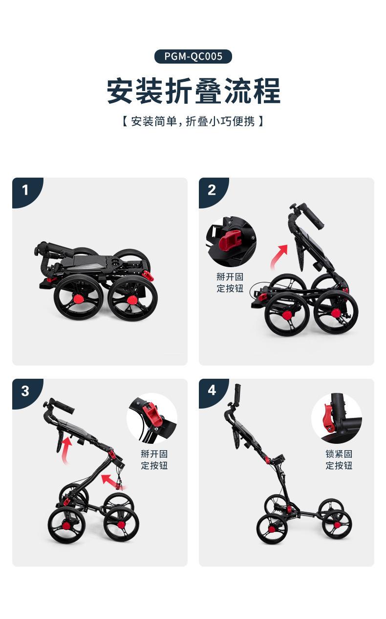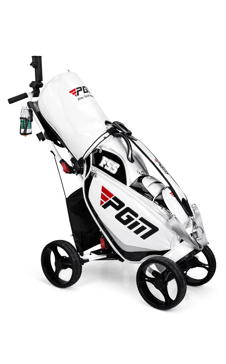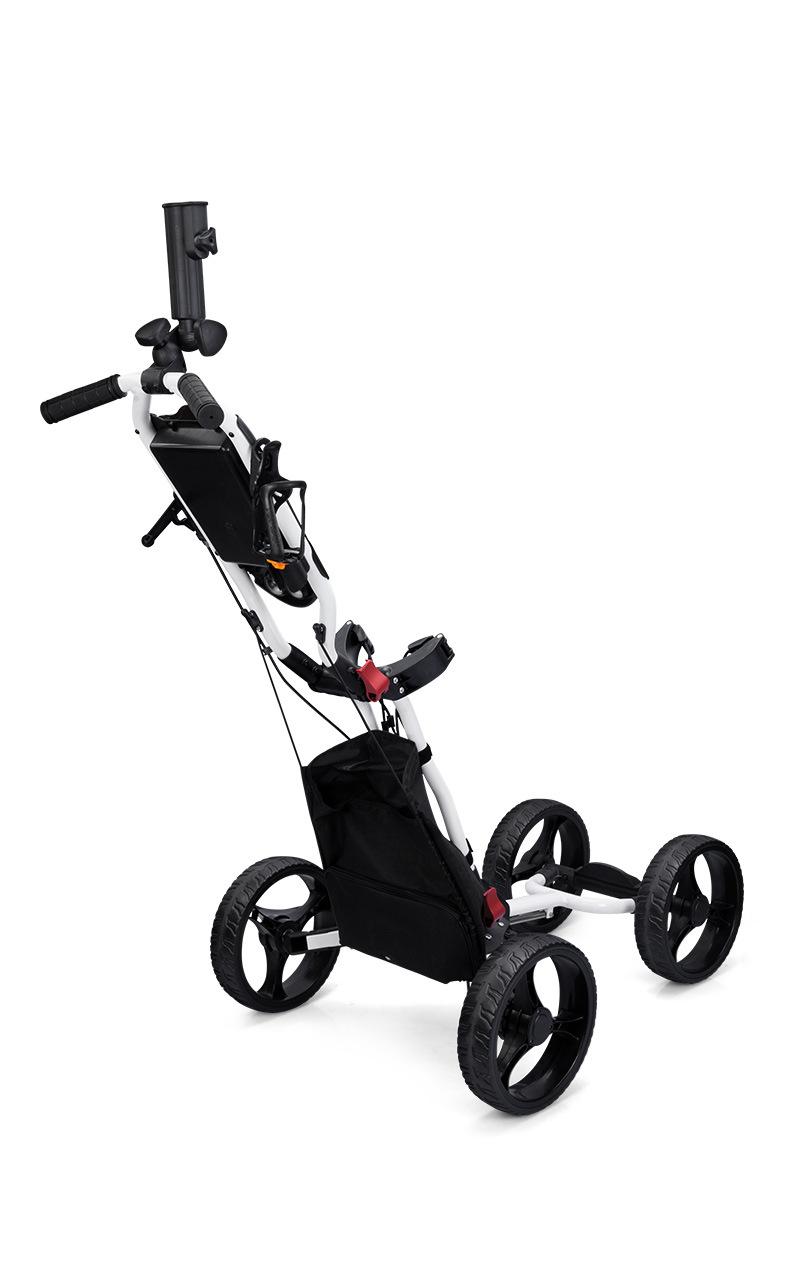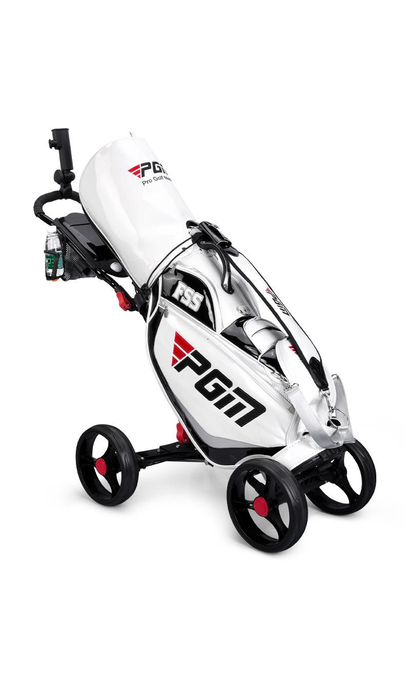 Pgm Golf Carro de Bolas Plegable de Cuatro Ruedas Trolley Soporte para Paraguas Soporte para Botella de Agua Freno Manual Carro de Bolas