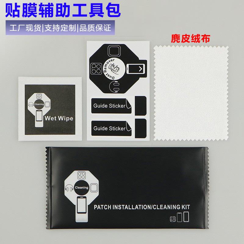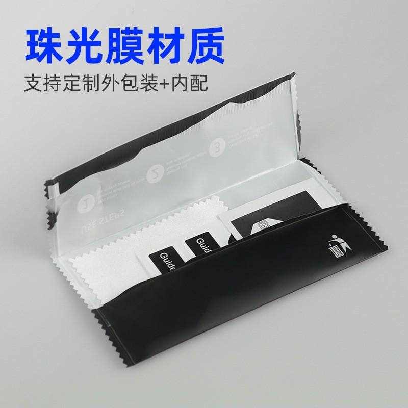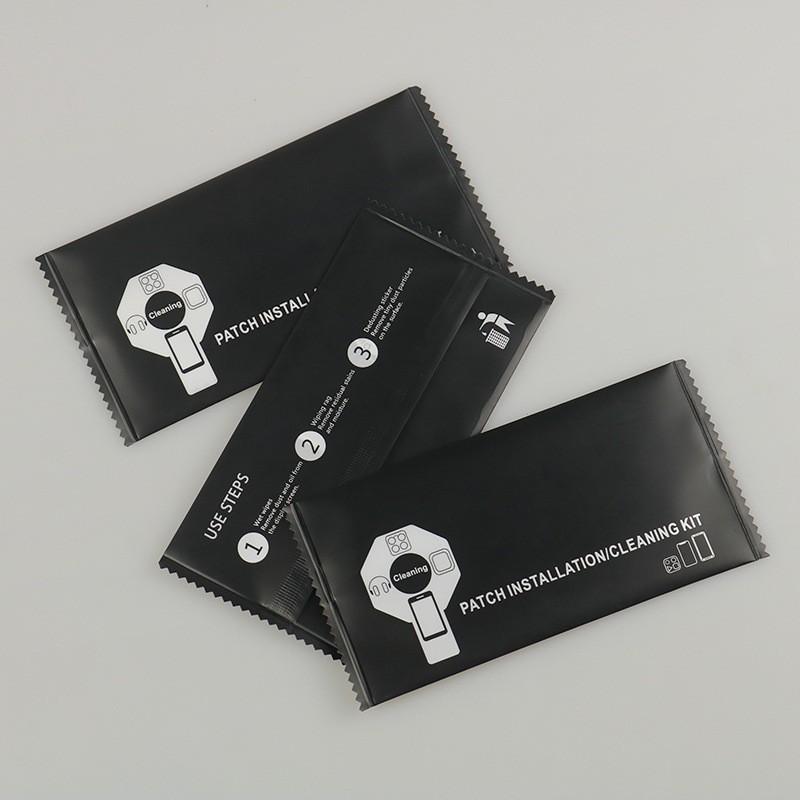 Kit de limpieza de película para teléfono móvil con paquete de alcohol y película templada al por mayor de fábrica, kit de herramientas de sellado de cuatro lados con película de perla blanca