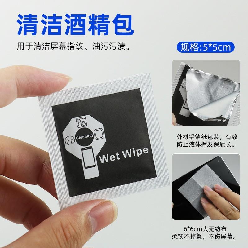 Película templada bolsa de alcohol para película accesorios de limpieza de pantalla para eliminación de polvo kit de herramientas de tres piezas para película de teléfono móvil en stock