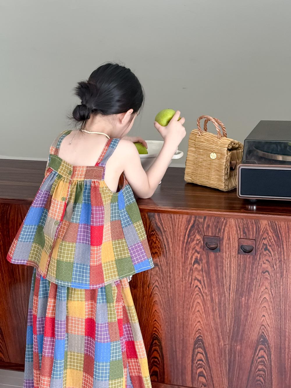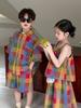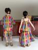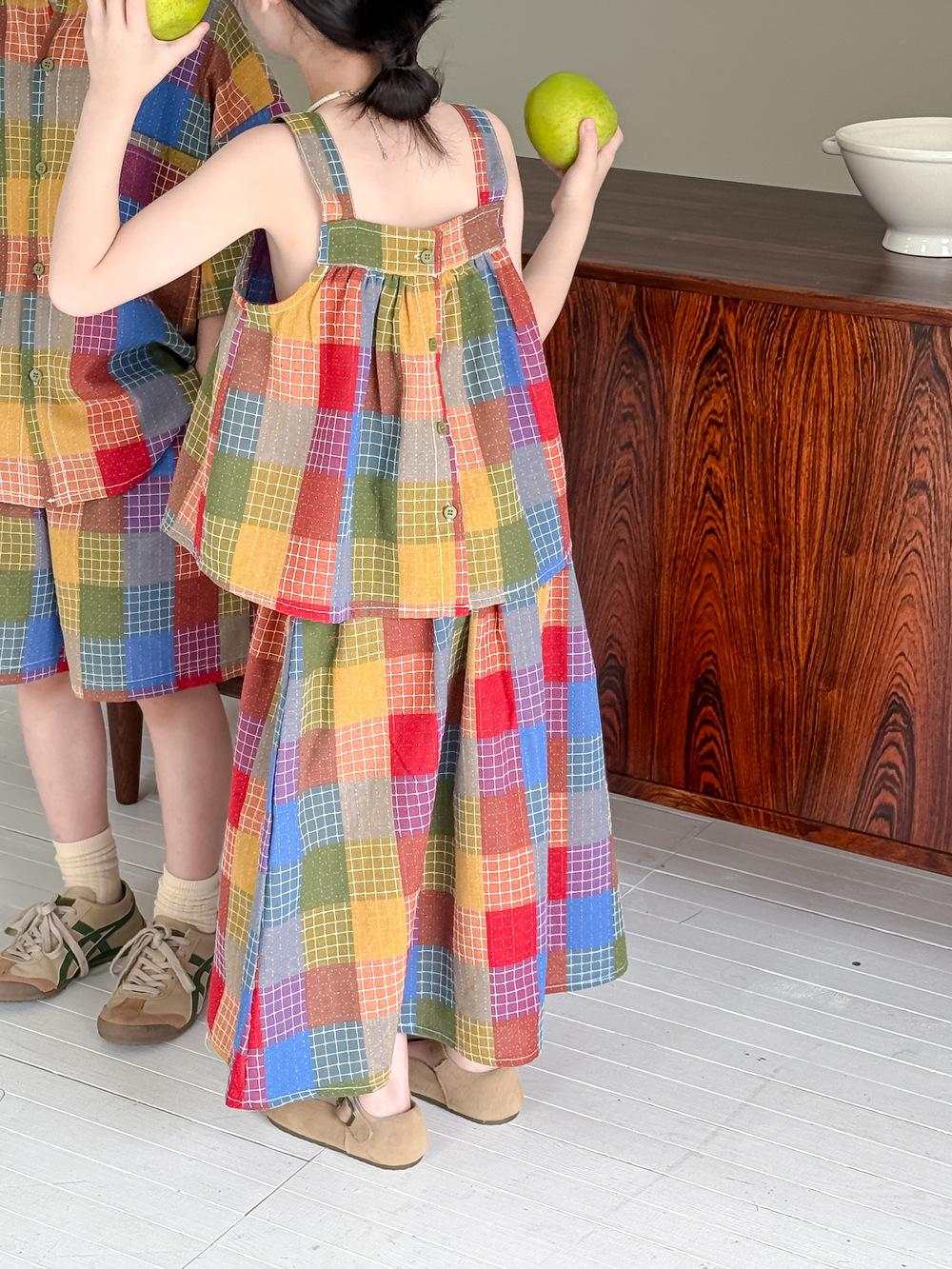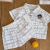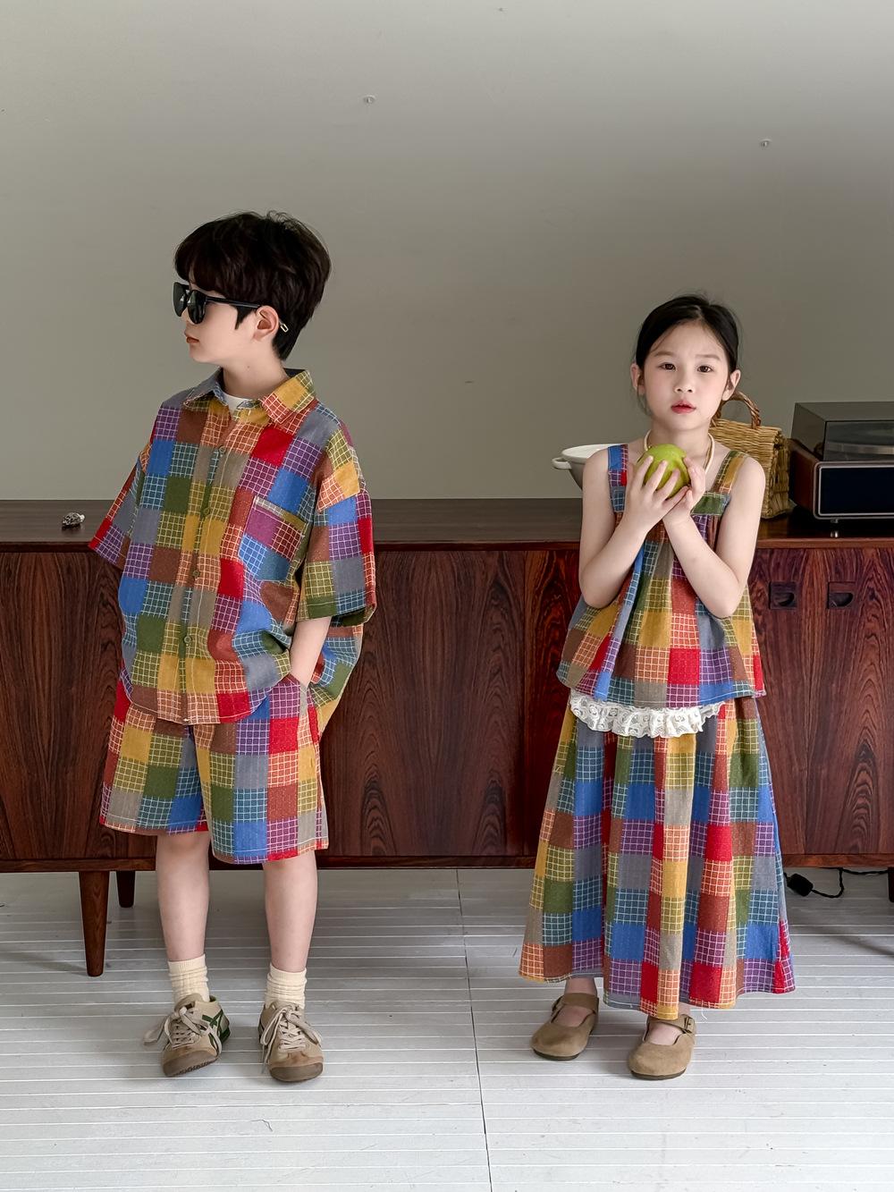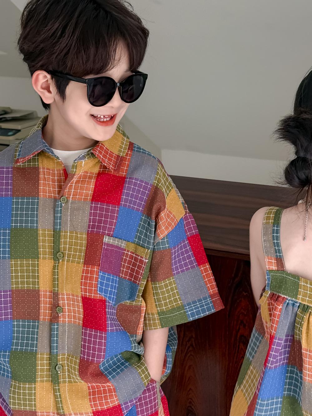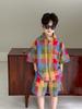 Traje para niños 2025 Verano Niños y Niñas Coreano Color Cuadros Camisa Shorts Dos Piezas Traje de Tirantes para Niños