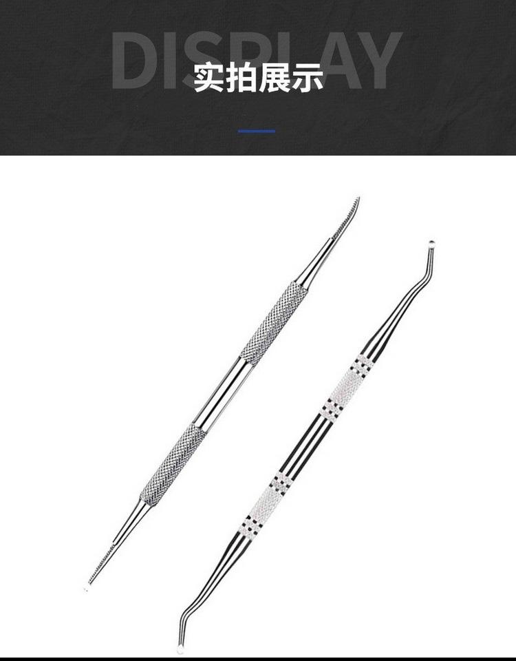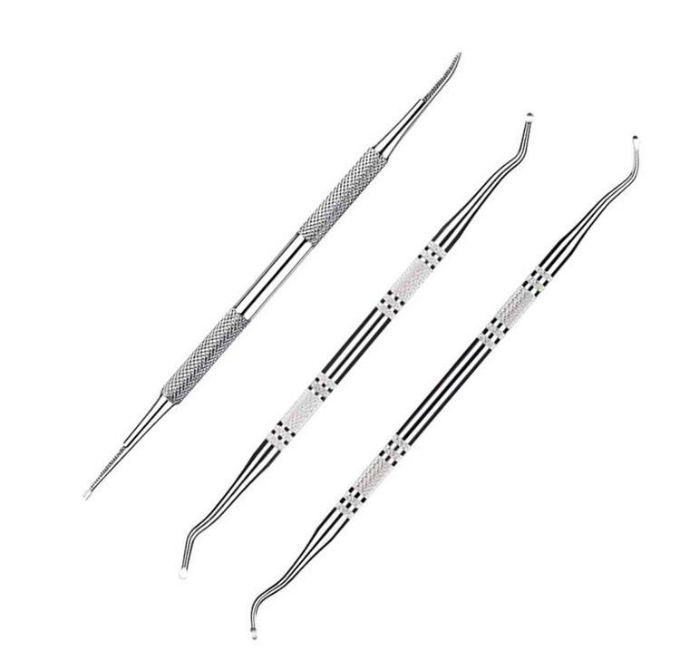 Dispositivo removedor de uñas de acero inoxidable al por mayor de fábrica, cuchara para surcos de uñas de doble cabeza, lima para aderezo de uñas, tira para pulir uñas, lima removedora de uñas, herramienta para uñas