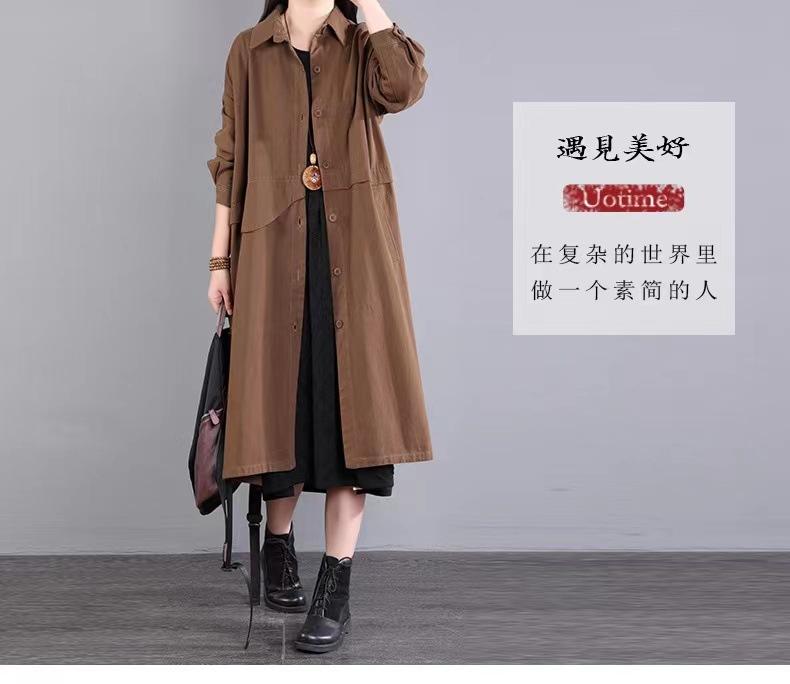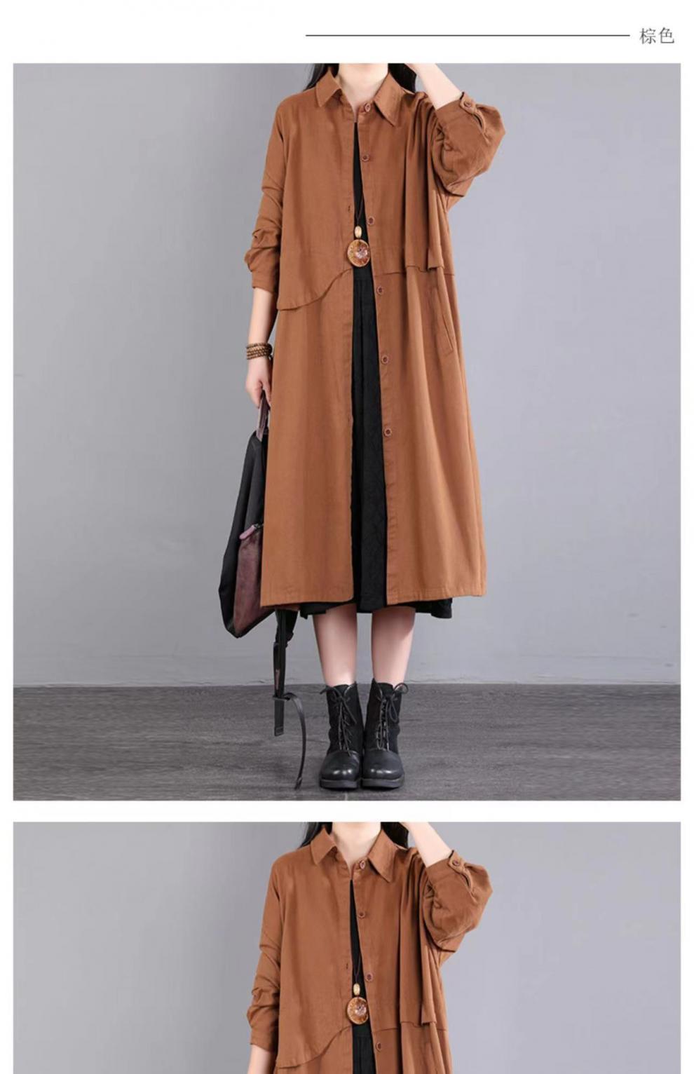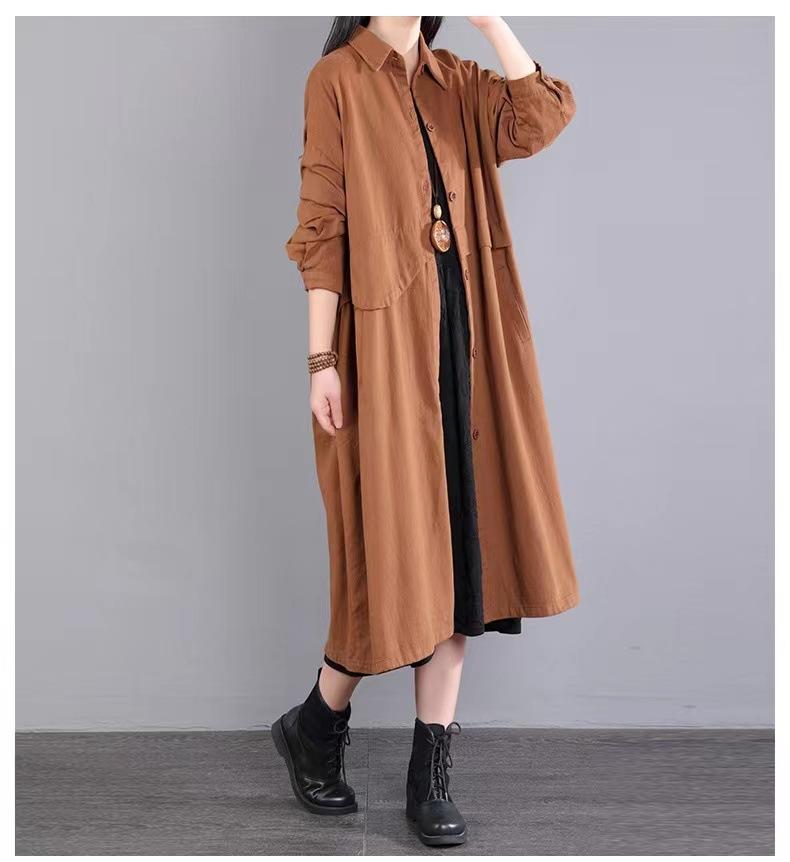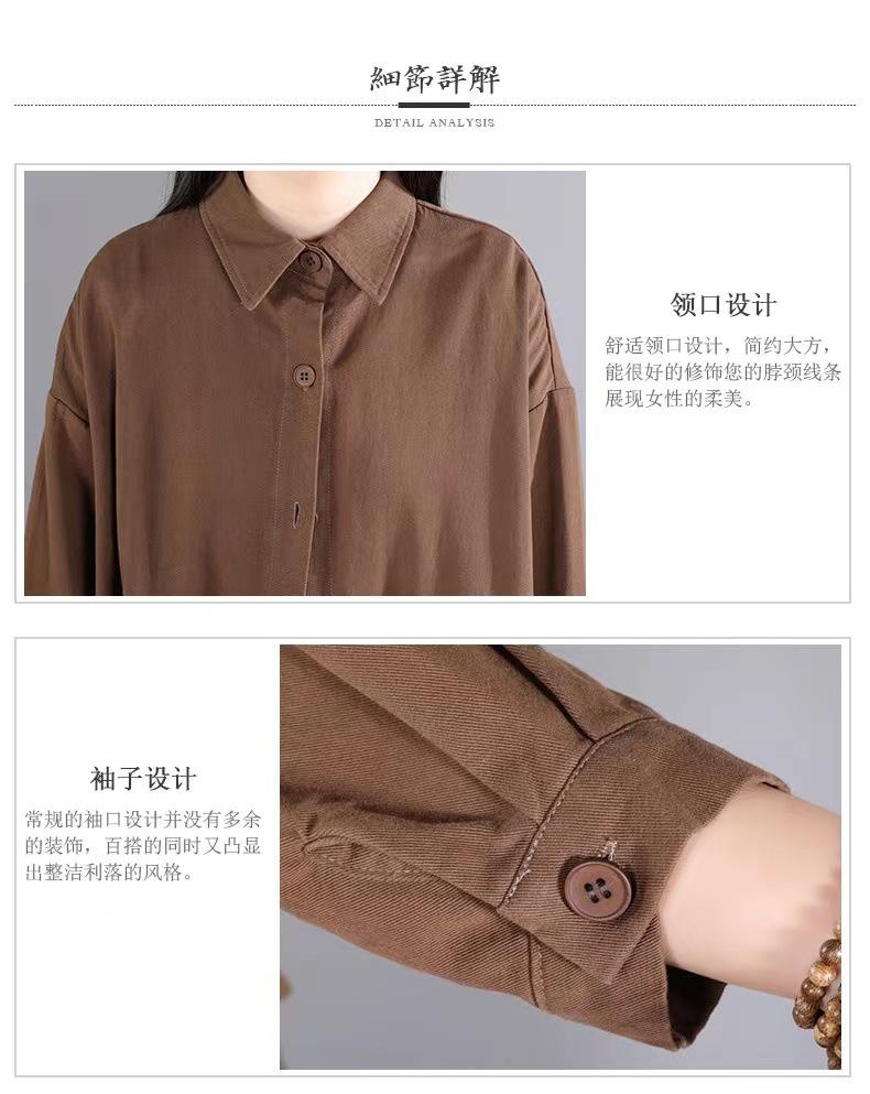 Ropa Nueva de Otoño 2022 Línea A Color Puro Cruzado Camisa de Largo Medio Cortavientos para Mujer