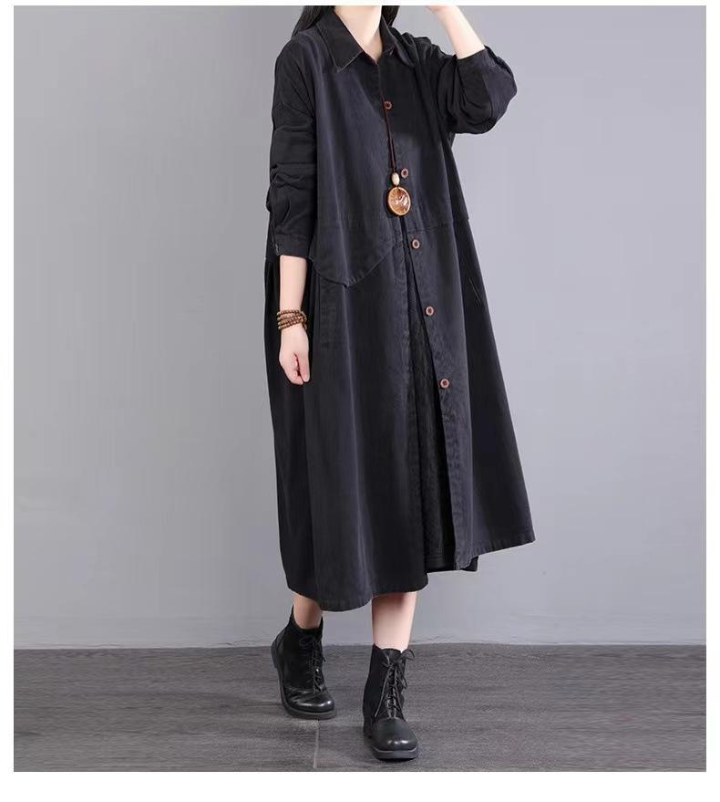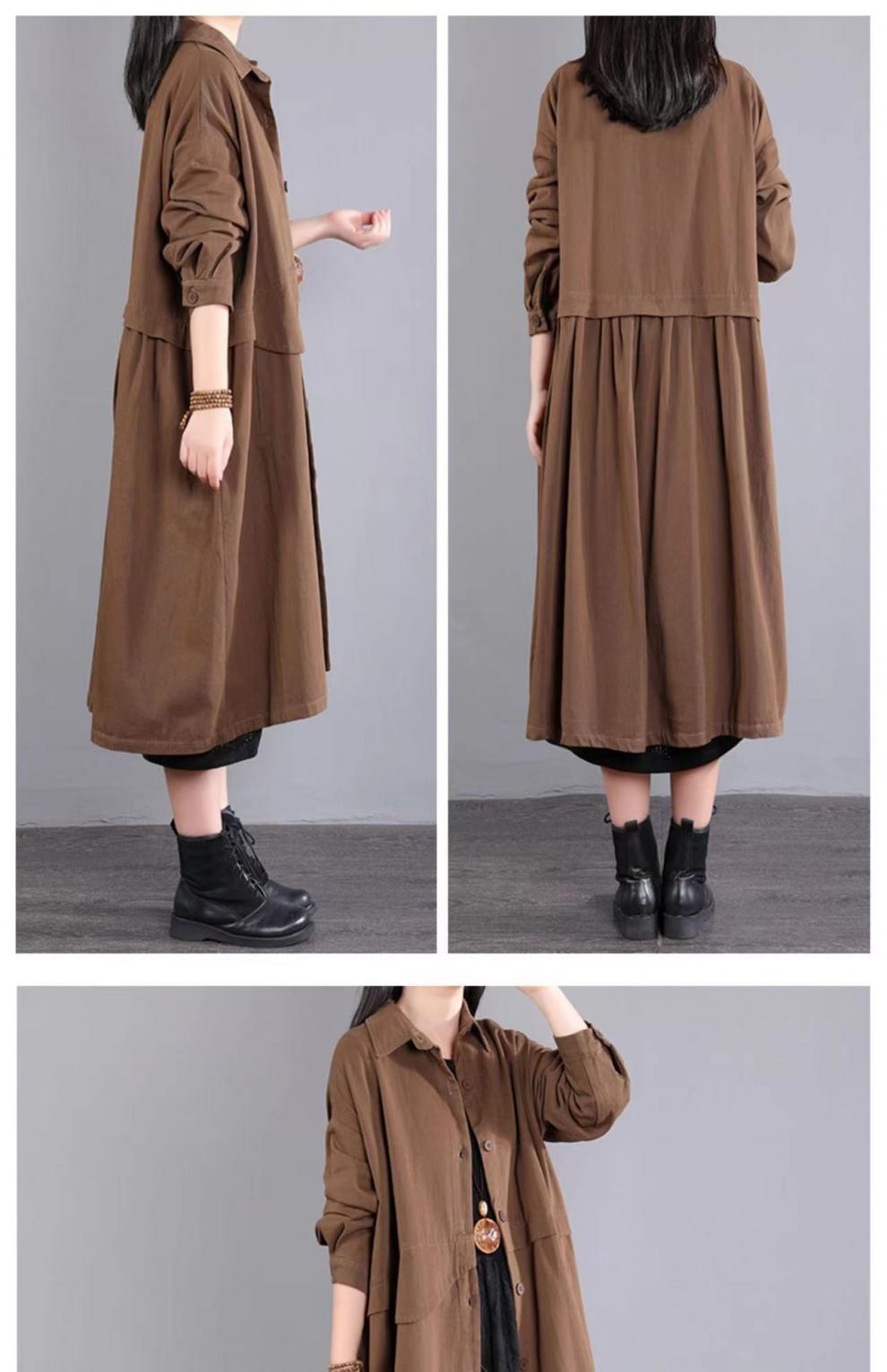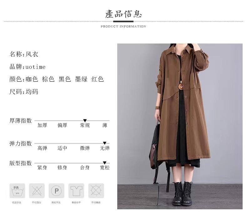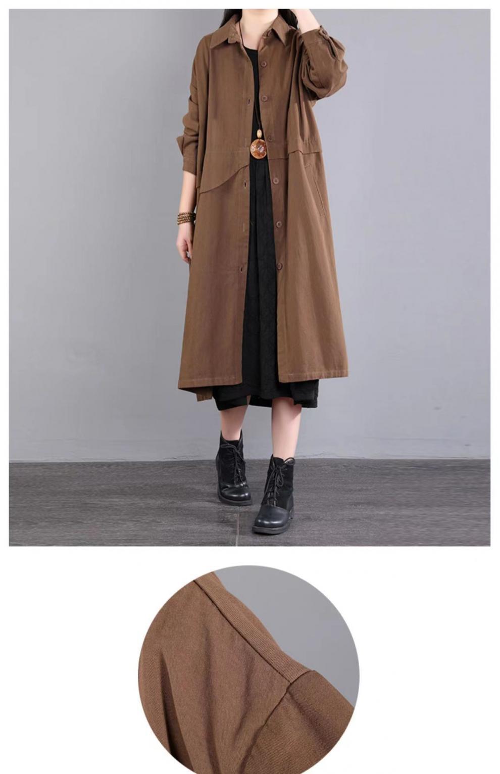 Ropa Nueva de Otoño 2022 Línea A Color Puro Cruzado Camisa de Largo Medio Cortavientos para Mujer