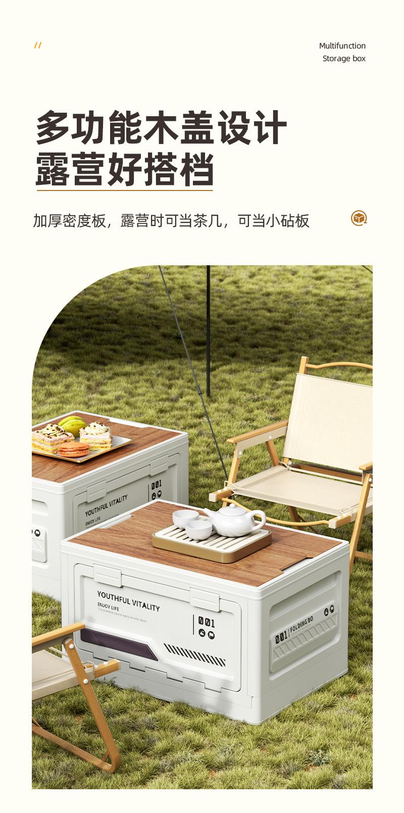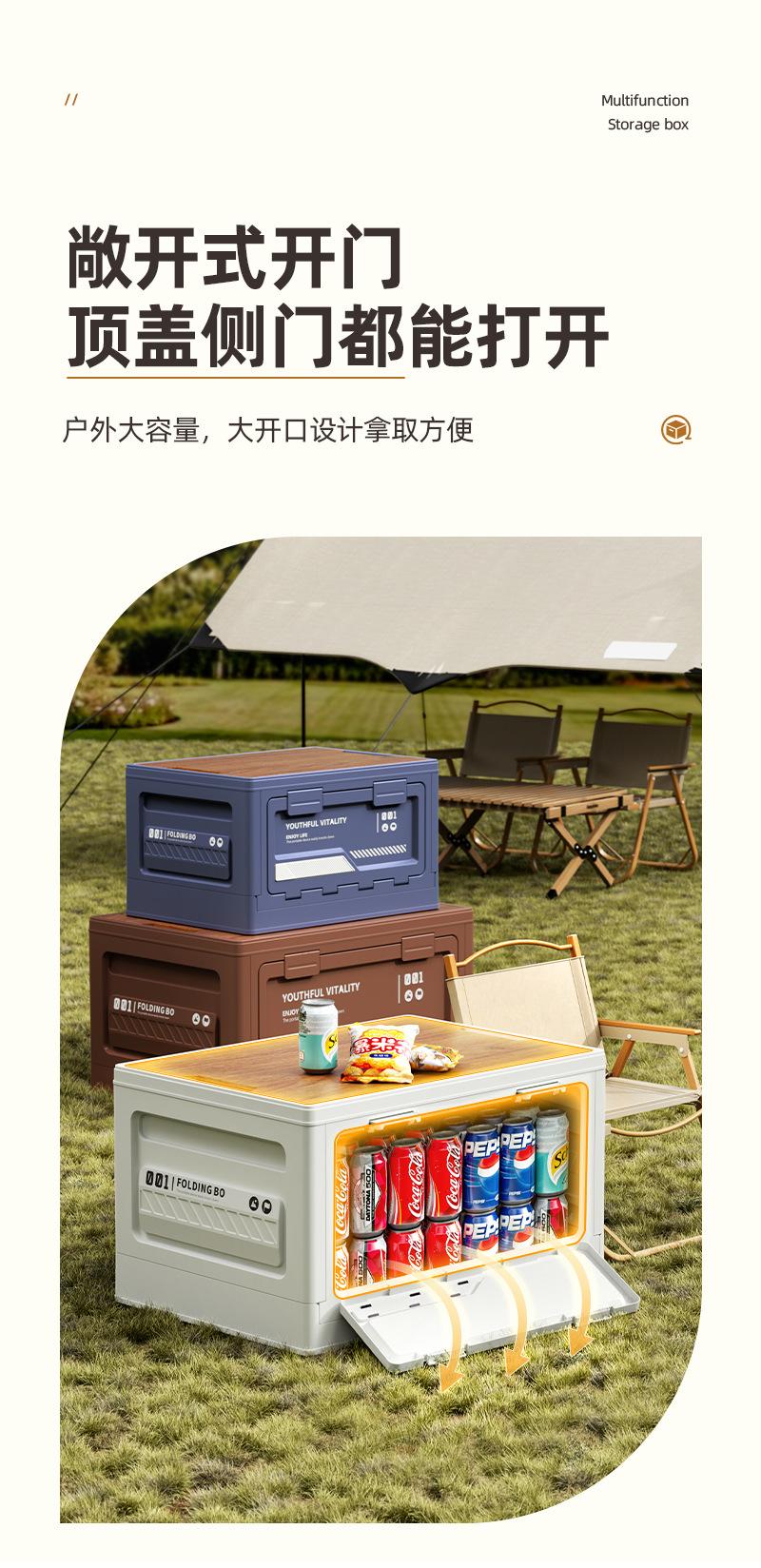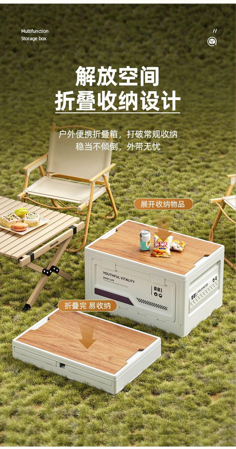 Caja de Almacenamiento para Camping al Aire Libre Puerta Lateral Extra Grande Camping Cubierta de Madera Caja Plegable Caja Organizadora de Almacenamiento para Maletero de Coche