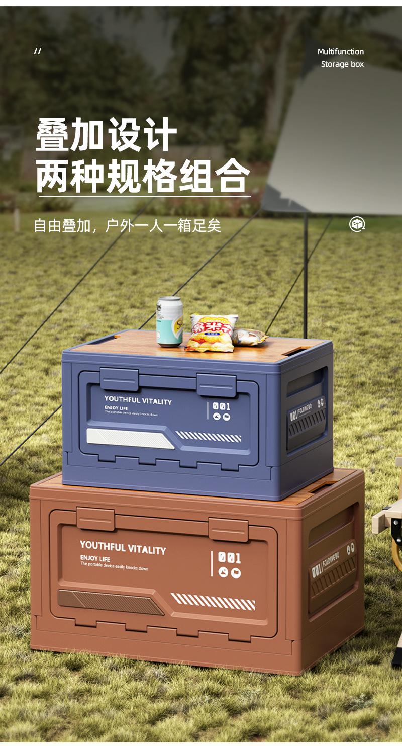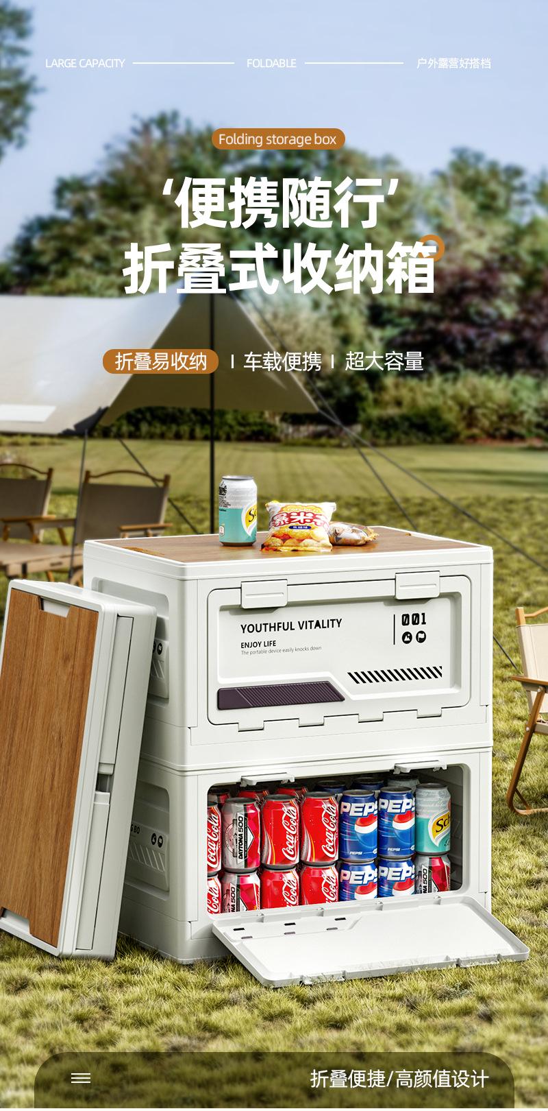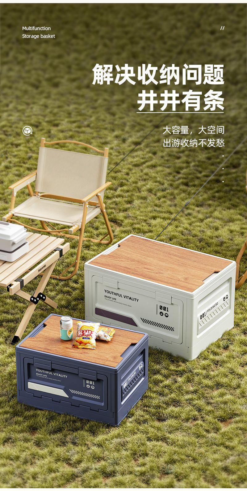 Caja de Almacenamiento para Camping al Aire Libre Puerta Lateral Extra Grande Camping Cubierta de Madera Caja Plegable Caja Organizadora de Almacenamiento para Maletero de Coche
