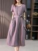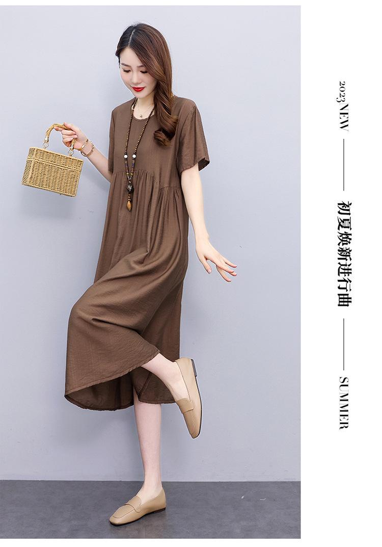 Vestido holgado de algodón y lino de talla grande para mujer, novedad de 2025, vestido playero elegante y adelgazante que cubre la nariz y combina con todo para mujer.
