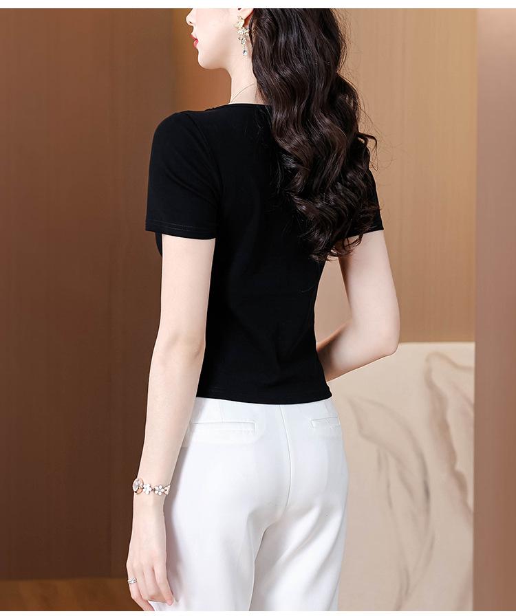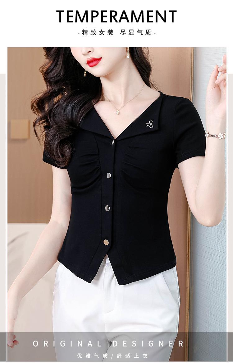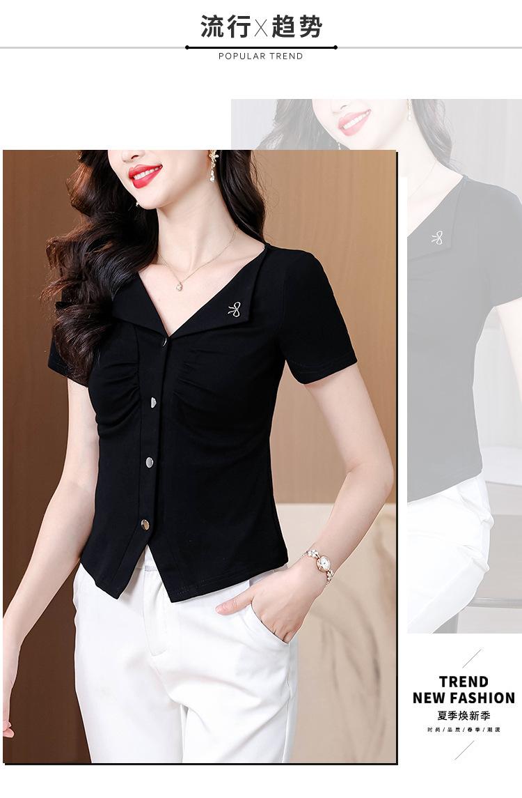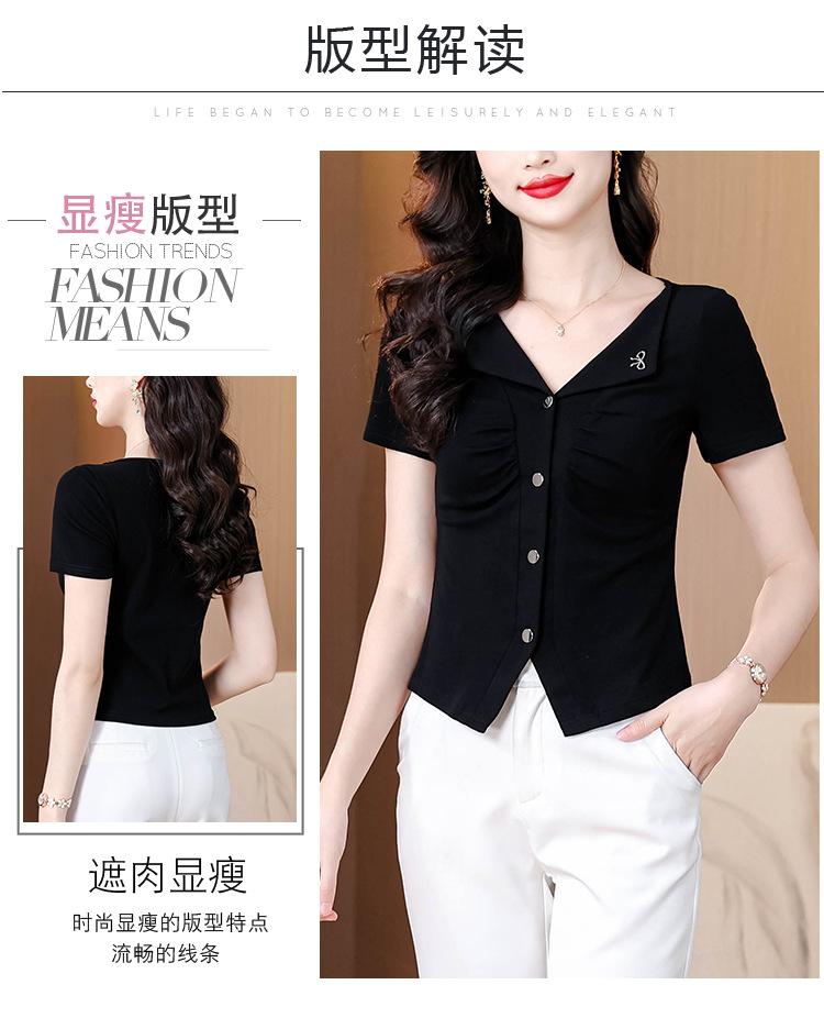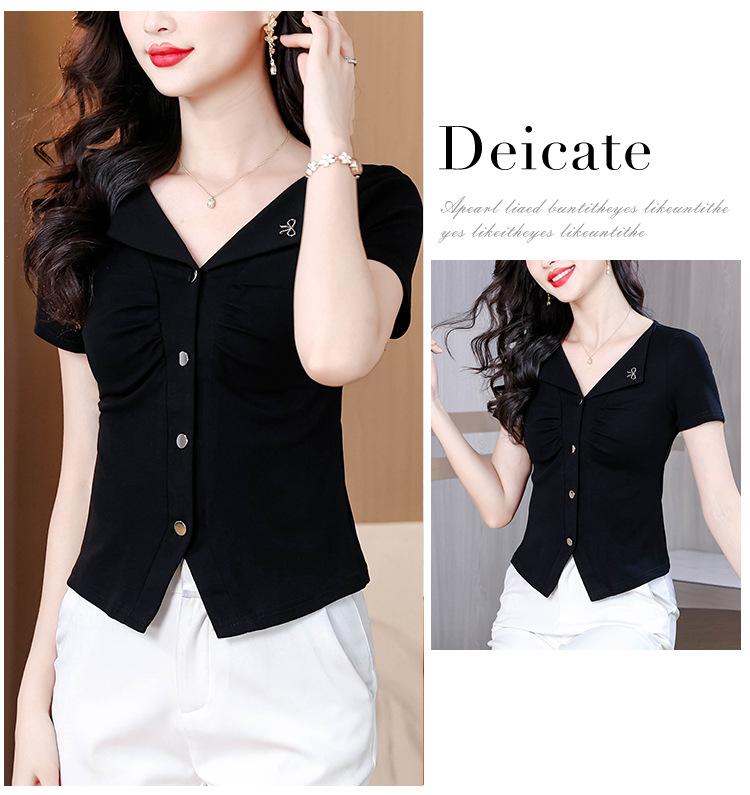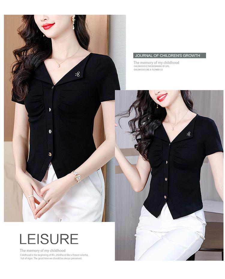 Compra Camiseta de manga corta con cuello en V y color liso para mujer, diseño plisado, cintura adelgazante, que cubre el vientre, novedad de verano de 2025 al por mayor en Joom.pro