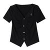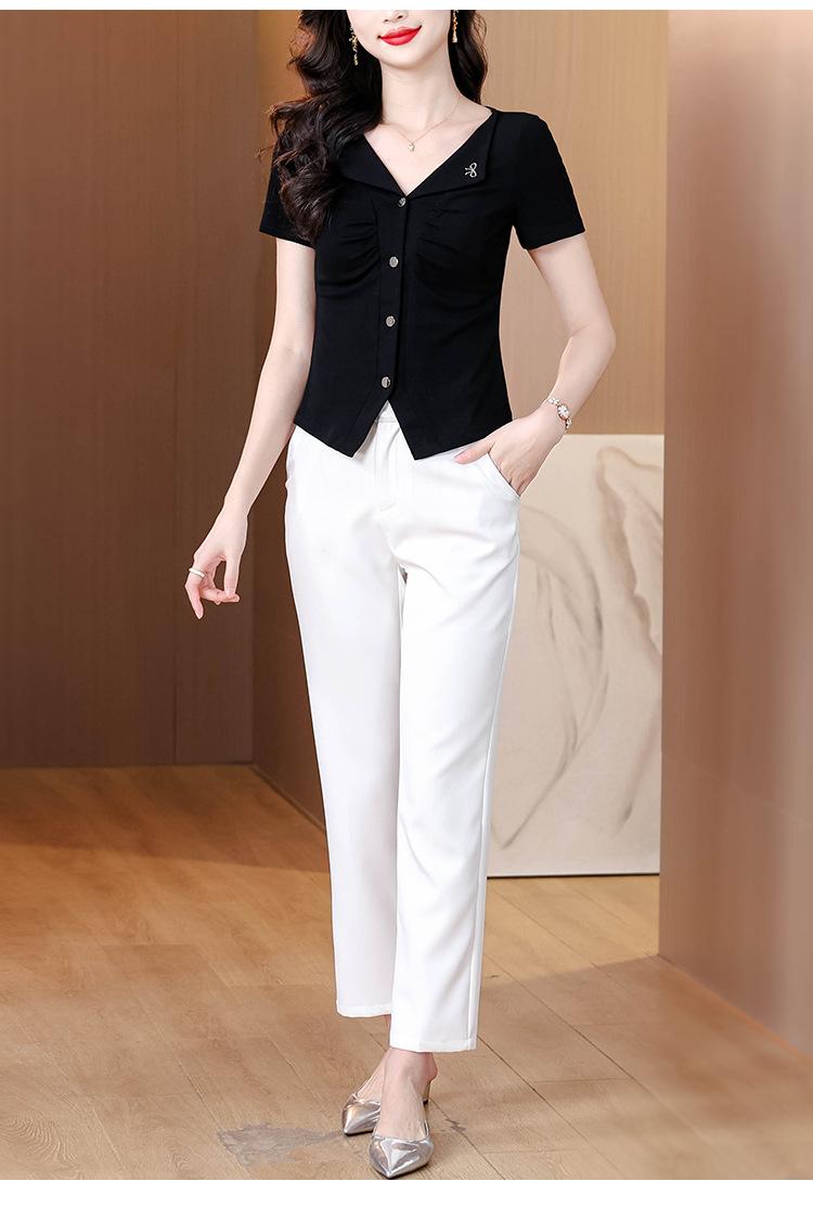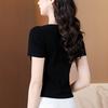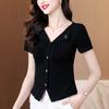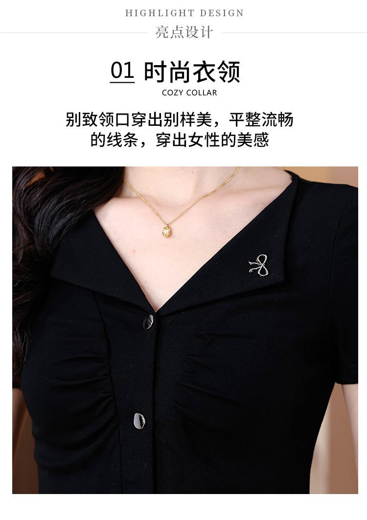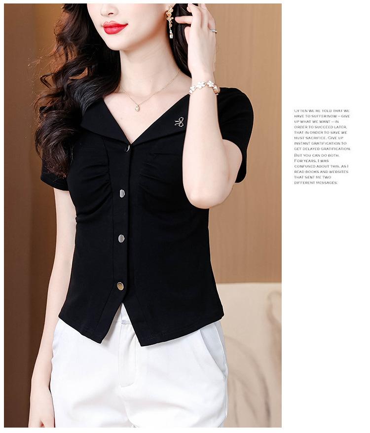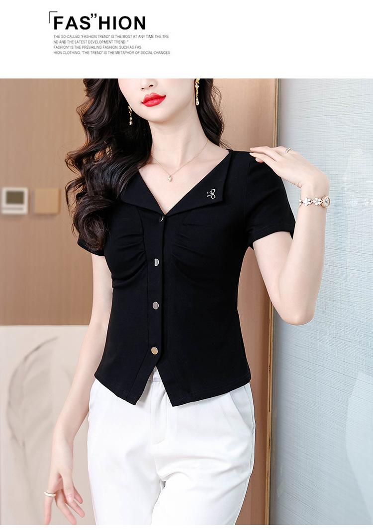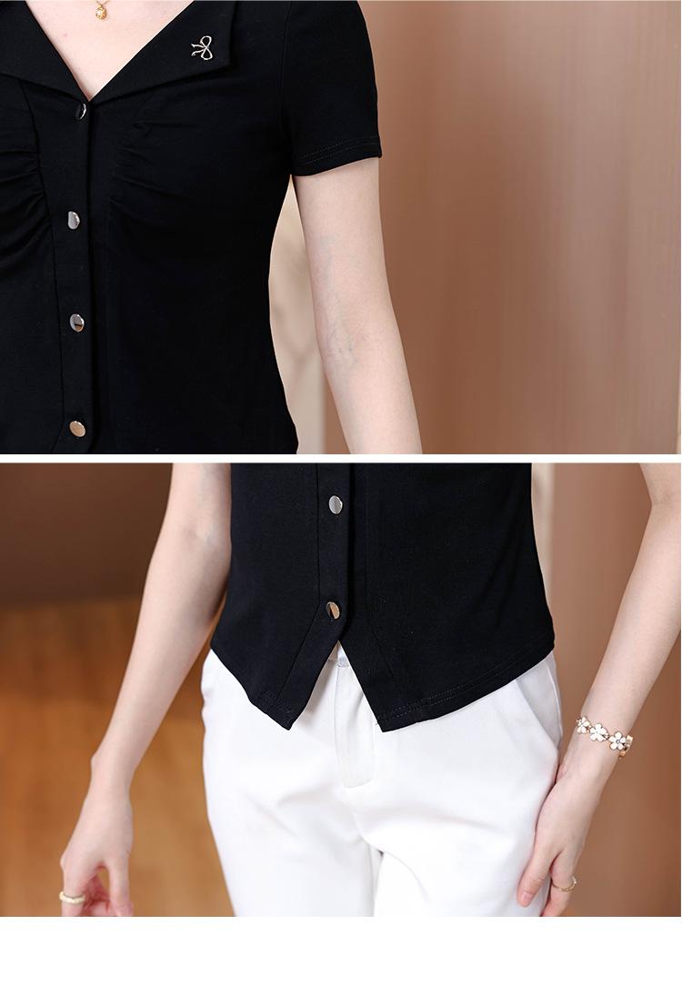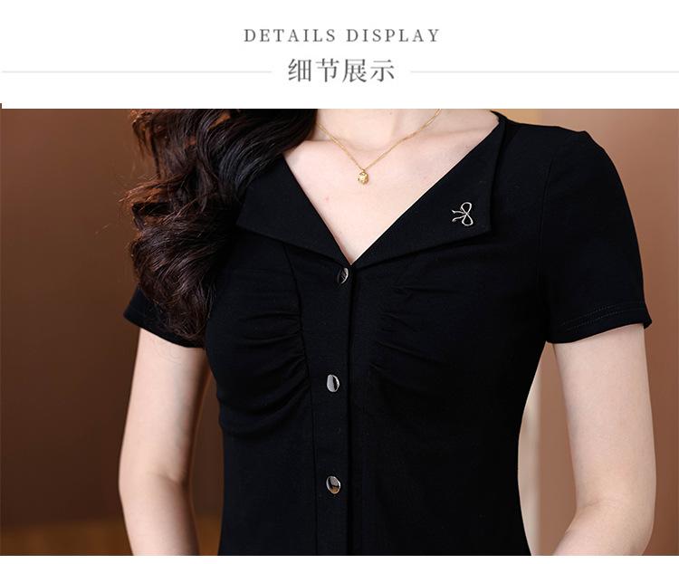 Compra Camiseta de manga corta con cuello en V y color liso para mujer, diseño plisado, cintura adelgazante, que cubre el vientre, novedad de verano de 2025 al por mayor en Joom.pro