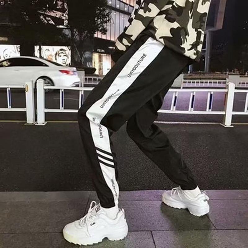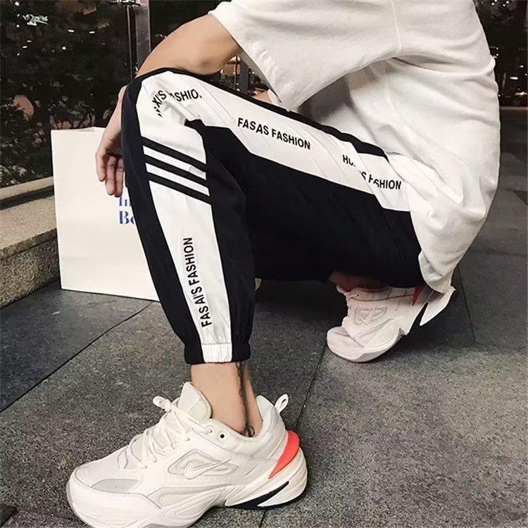 Otoño 2020 nuevos pantalones casuales para hombre con tobillo atado pantalones de moda coreana pantalones deportivos sueltos a rayas hombres
