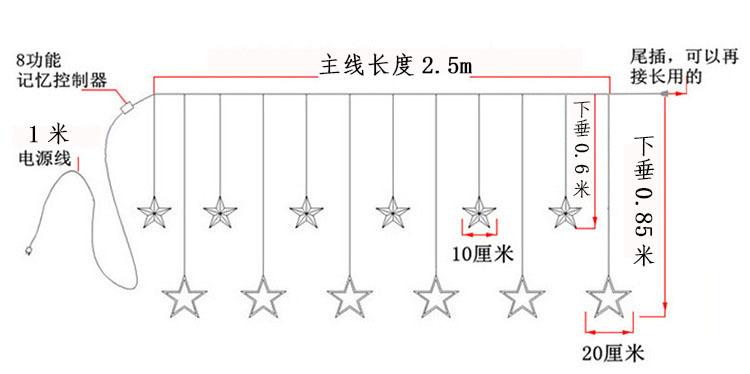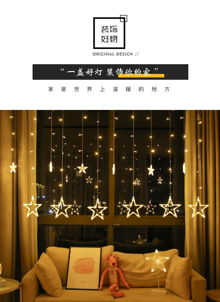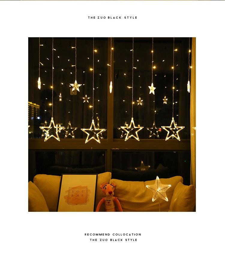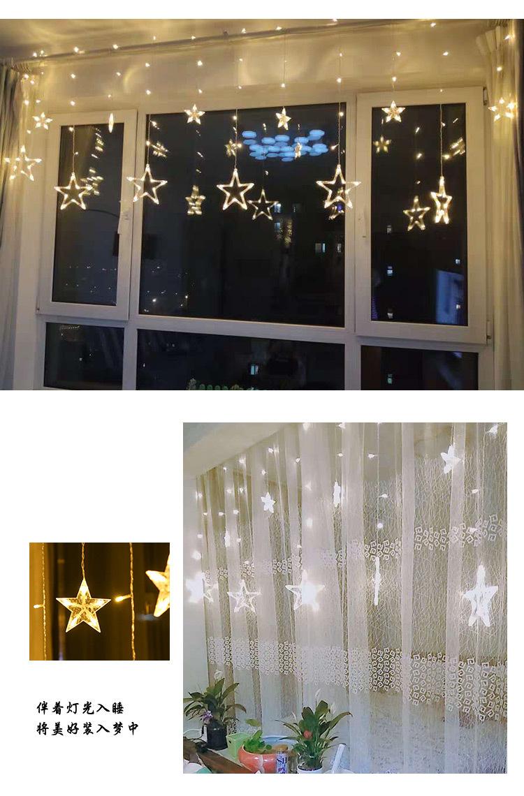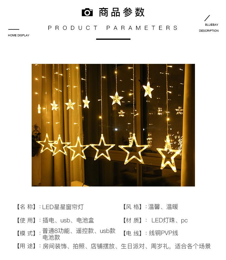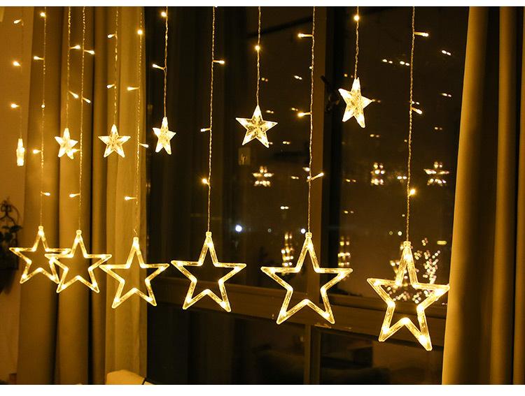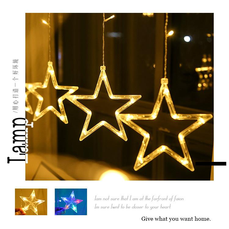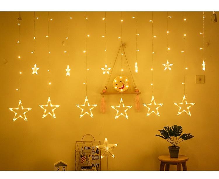 Luces de cortina LED de estrella de cinco puntas, luces decorativas navideñas, tamaño de luces de estrellas, luces de cadena de cielo estrellado para habitación, estrella de cinco puntas