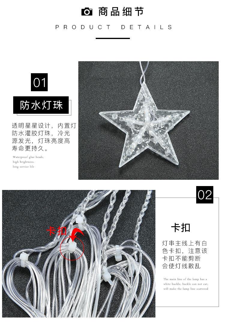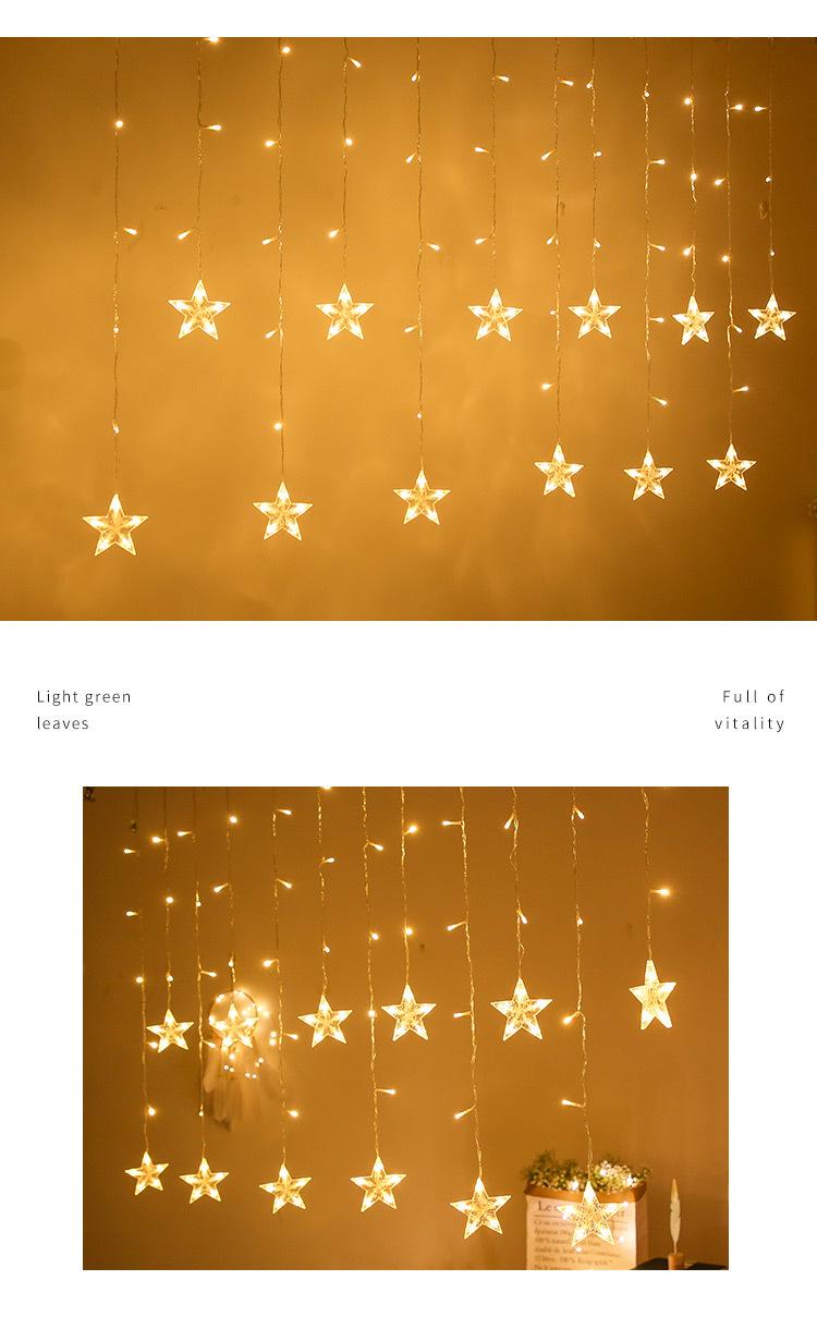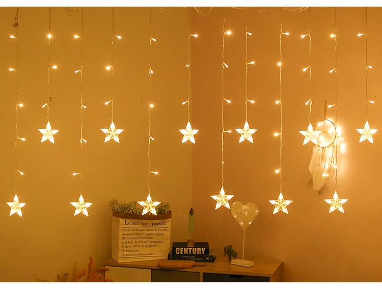 Compra Luces de cortina de estrellas LED luces de decoración interior luces de cadena estrellas cumpleaños vacaciones luces de ambiente luces de estrellas al por mayor en Joom.pro