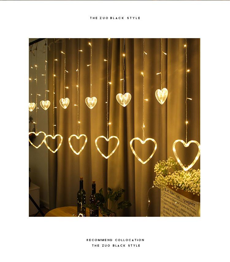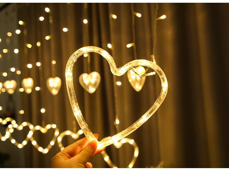 Luces de Cortina de Corazones LED Linternas Decoración de Interiores Guirnalda de Luces Festivas Luces de Ambiente Navideño Luces Decorativas de Corazón Luces Intermitentes
