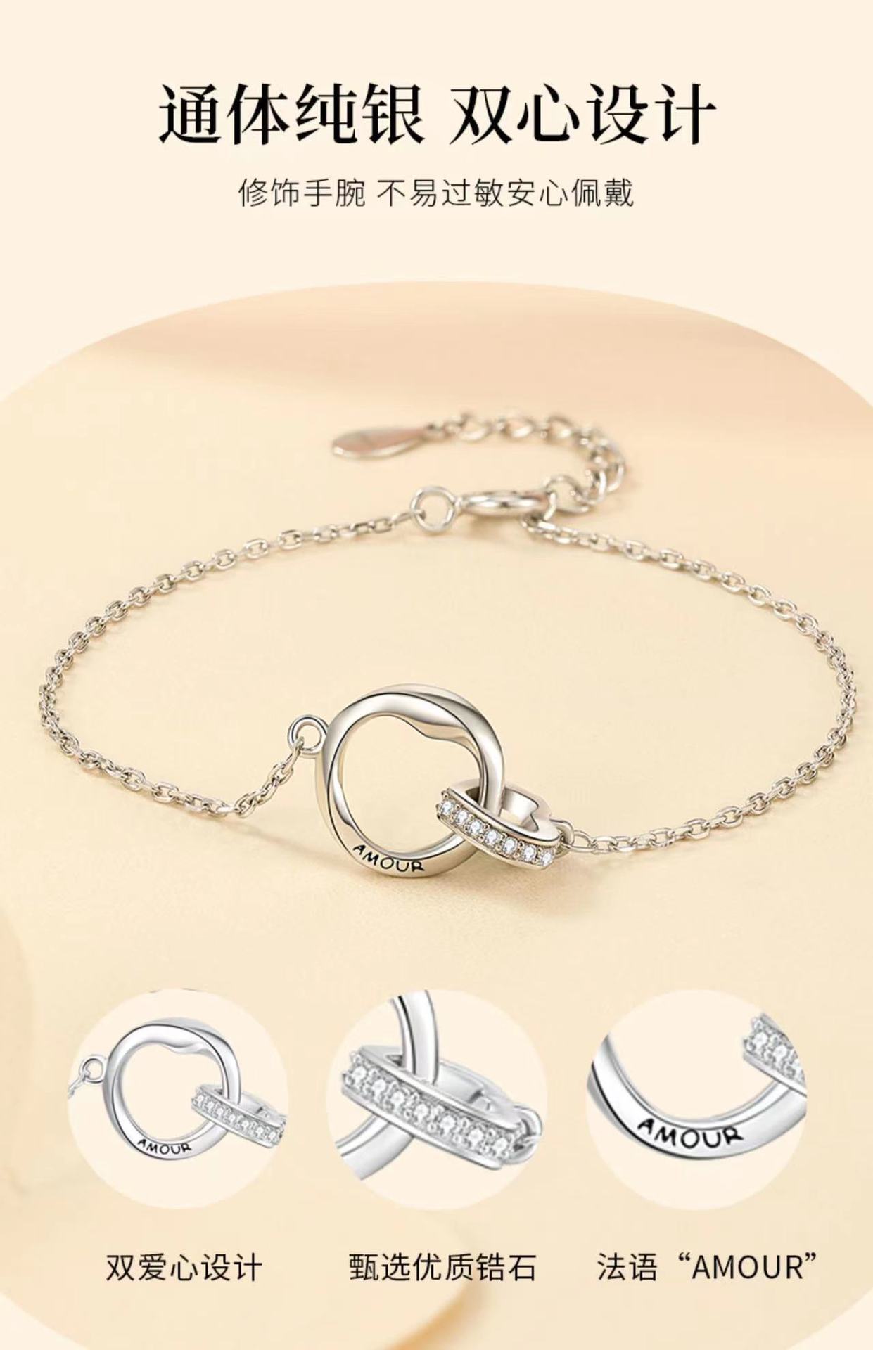 Heart double ring women's model [bracelet 16+5cm]