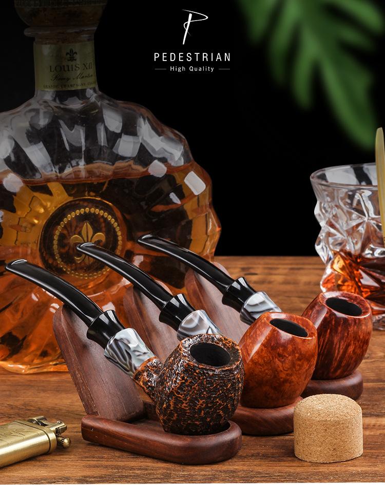 Pipa de raíz de brezo pipa tradicional antigua hecha a mano filtro de 3 mm pipa para tabaco seco boquilla militar madera maciza de escritorio pipa martillo