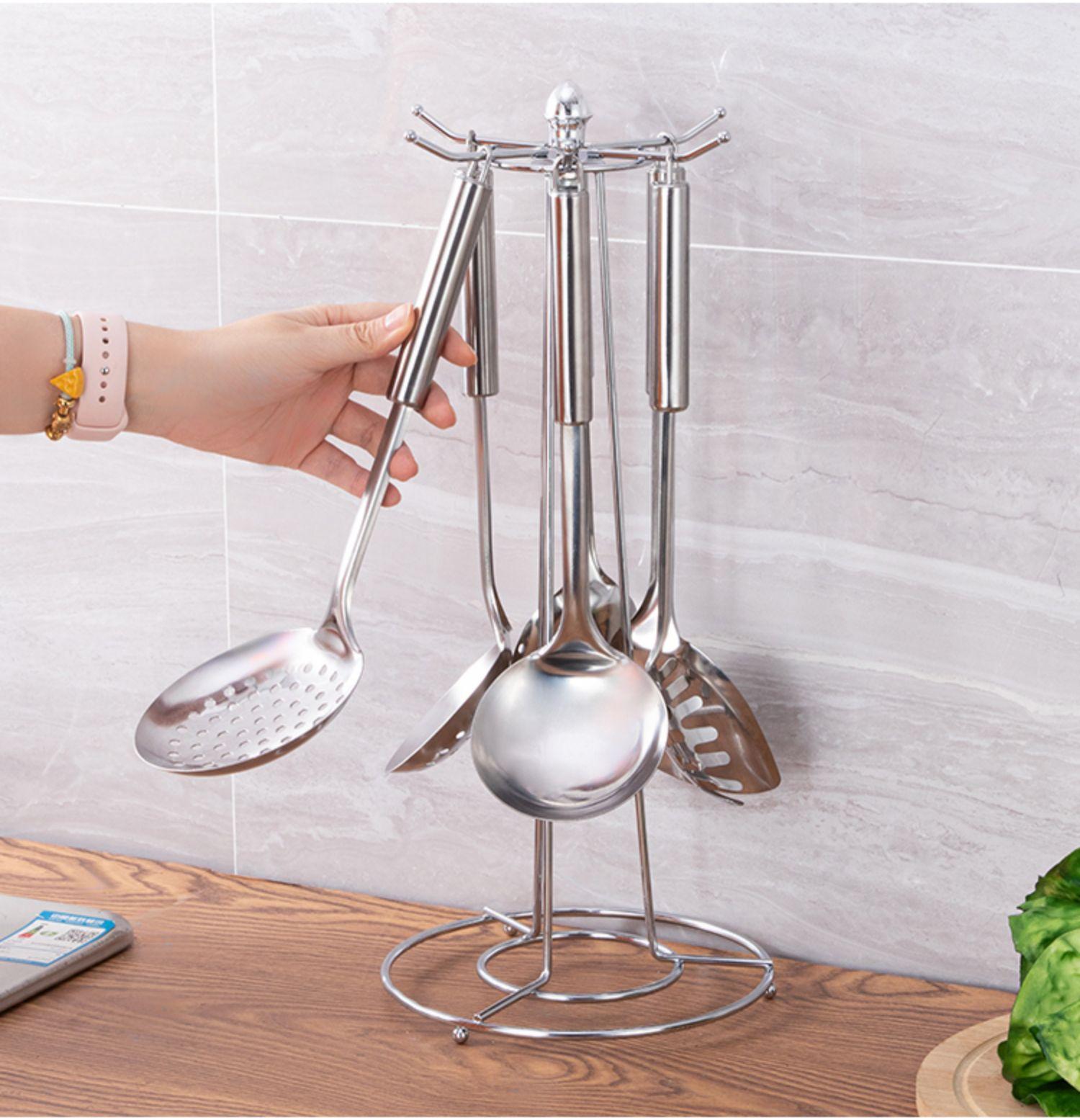 Estante Giratorio para Ollas y Espátulas Gancho Multifuncional Estante de Almacenamiento para Utensilios de Cocina Domésticos Estante de Almacenamiento para Suministros de Cocina Organizador de Cucharas Jikai