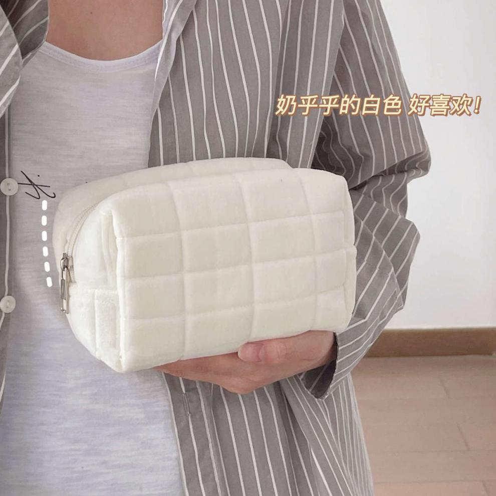 Bolso Nube Suave, Bolso Almohada Lechoso de Aspecto Sofisticado, Estuche para Lápices, Bolsa de Cosméticos para Viaje, Bolsa de Cosméticos de Gran Capacidad