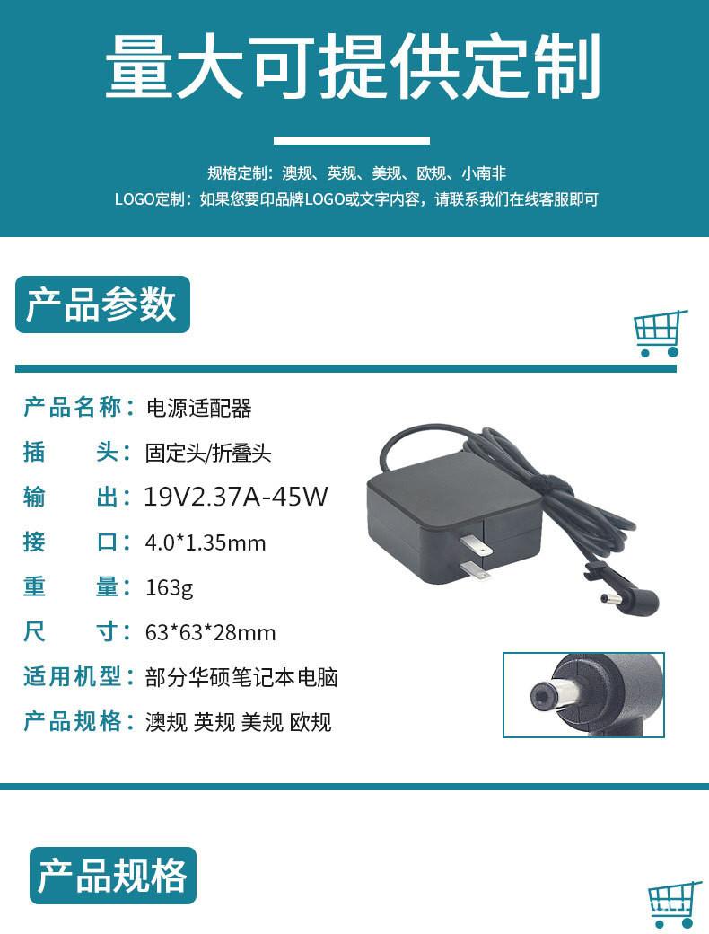 Potencia de salida:19 V 2,37 A(Negativo afuera y positivo adentro)