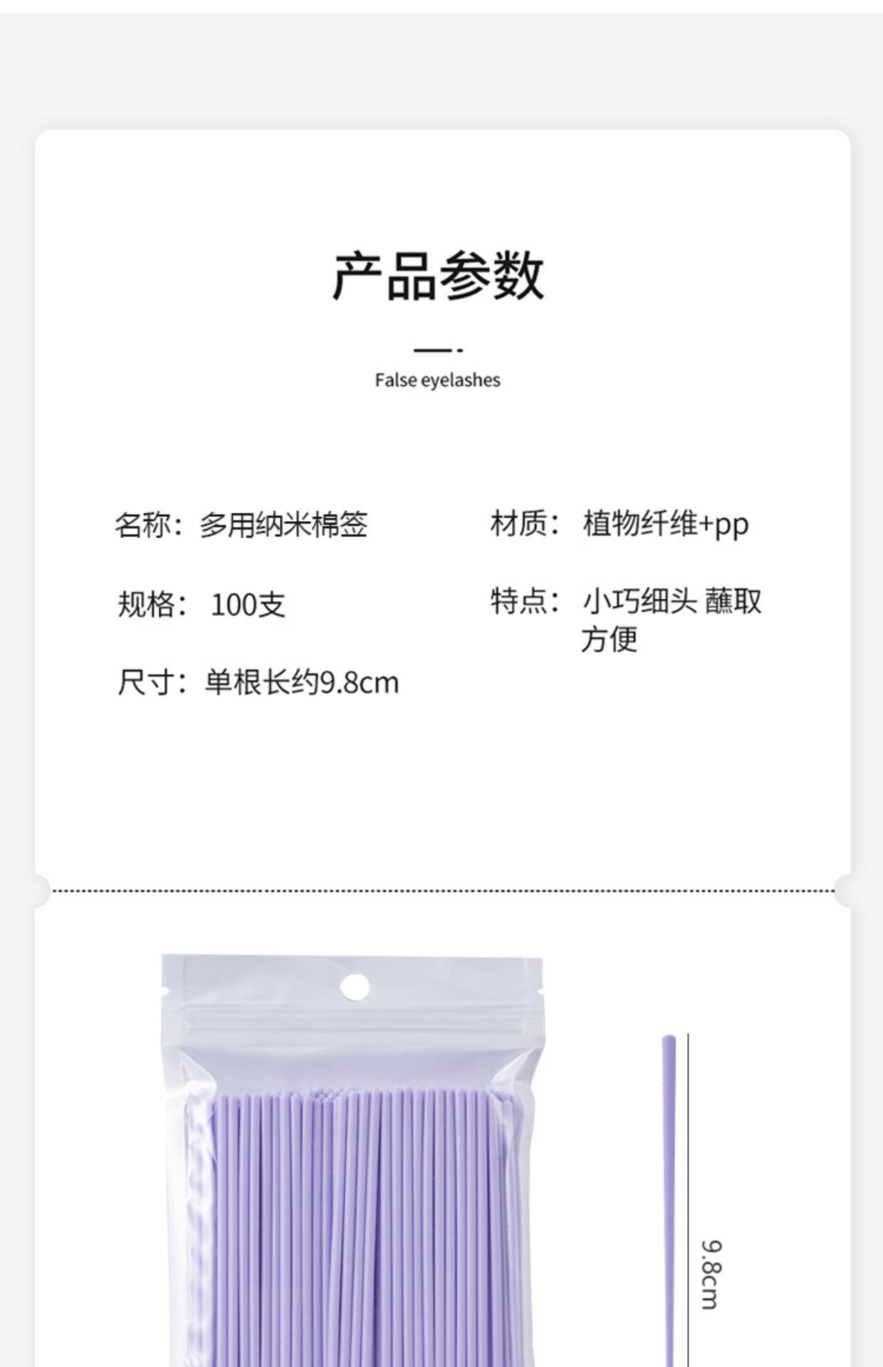 Bastoncillo de Algodón Desechable Nano para Maquillaje de Pestañas Punta Extremadamente Fina Removedor de Pestañas Uñas Costura Palo de Limpieza Bastoncillo de Algodón para Delineador de Ojos