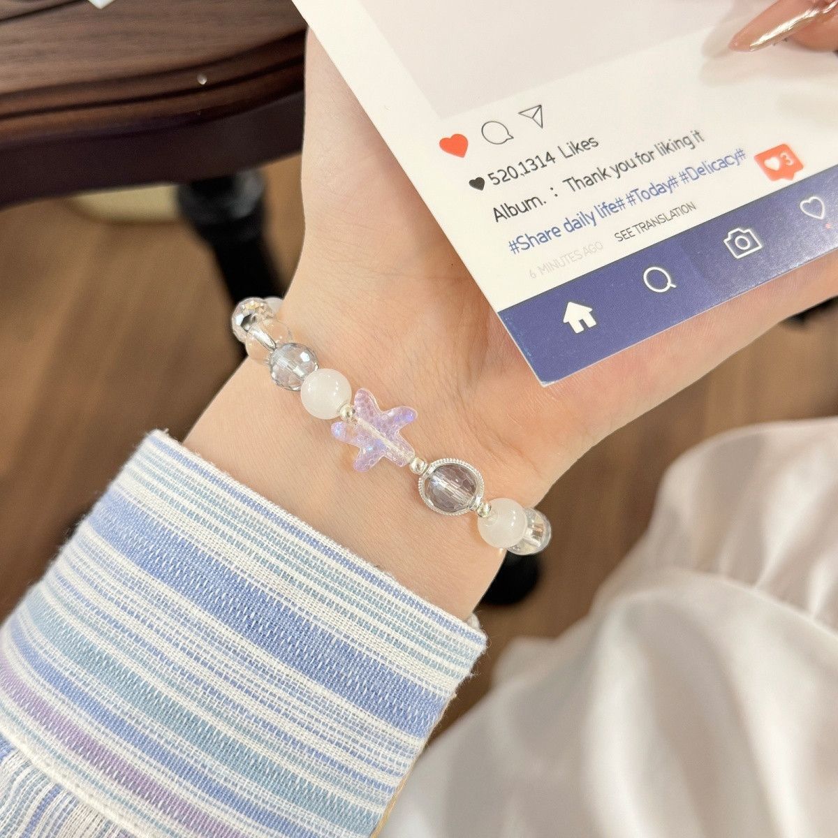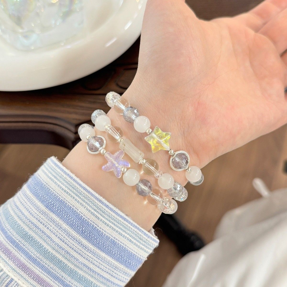 Colorful crystal bamboo bracelet, White starfish bracelet, Star halo bracelet