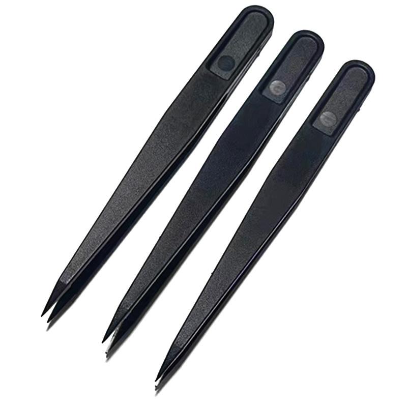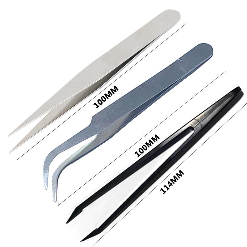 Metal pointed straight tweezers, Metal curved tweezers, Plastic tweezers