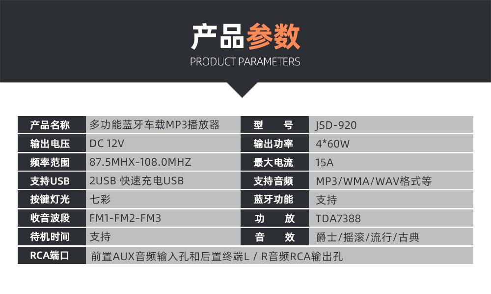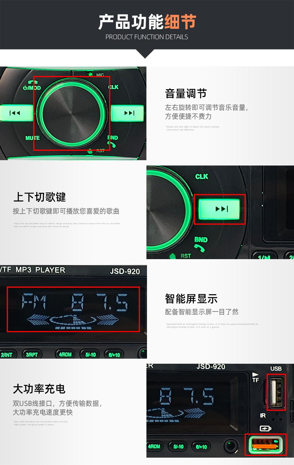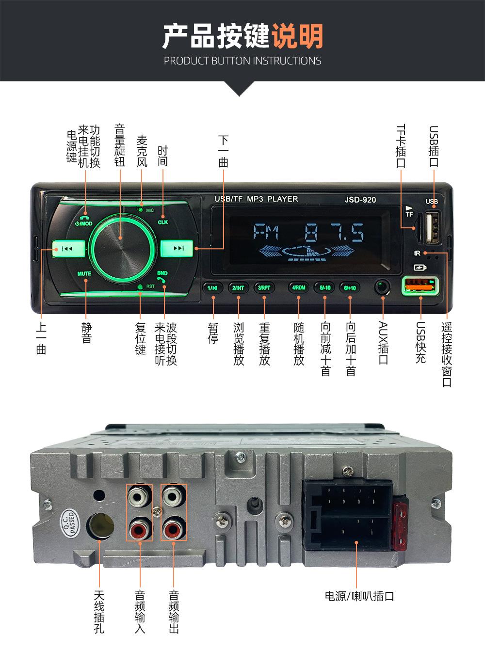 Reproductor Multimedia para Coche Neutral Radio para Coche Reproductor de MP3 Bluetooth Control por Voz Manos Libres 920
