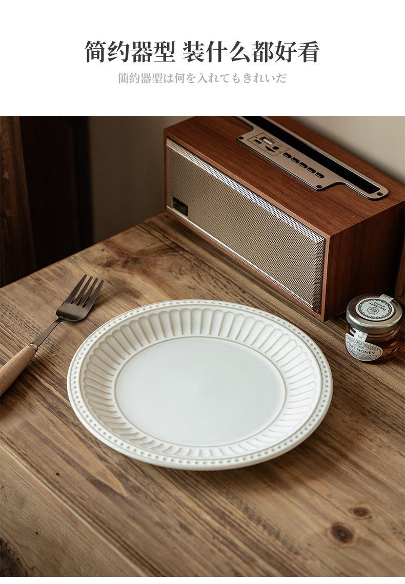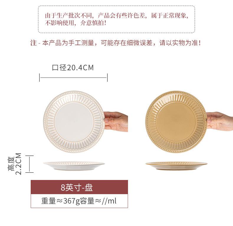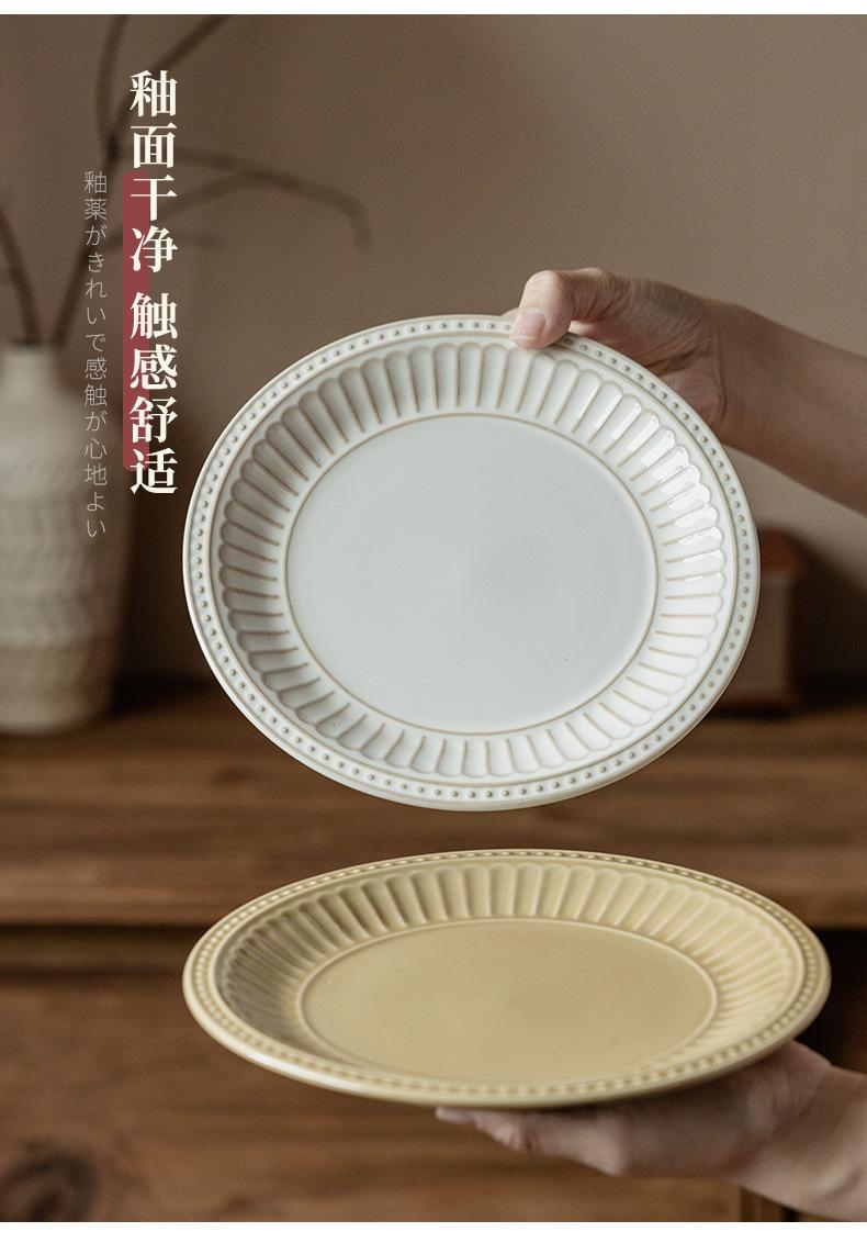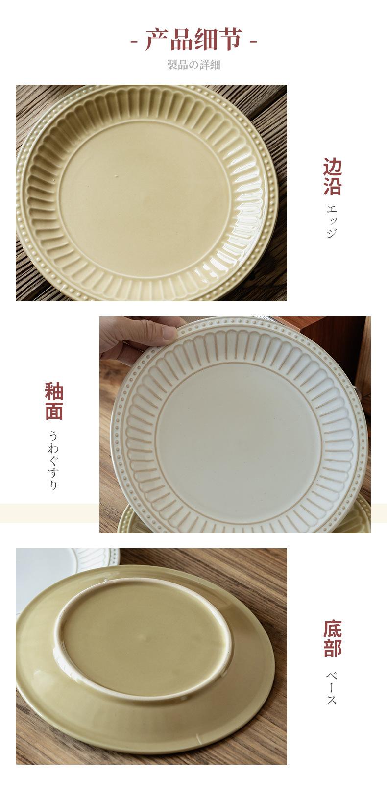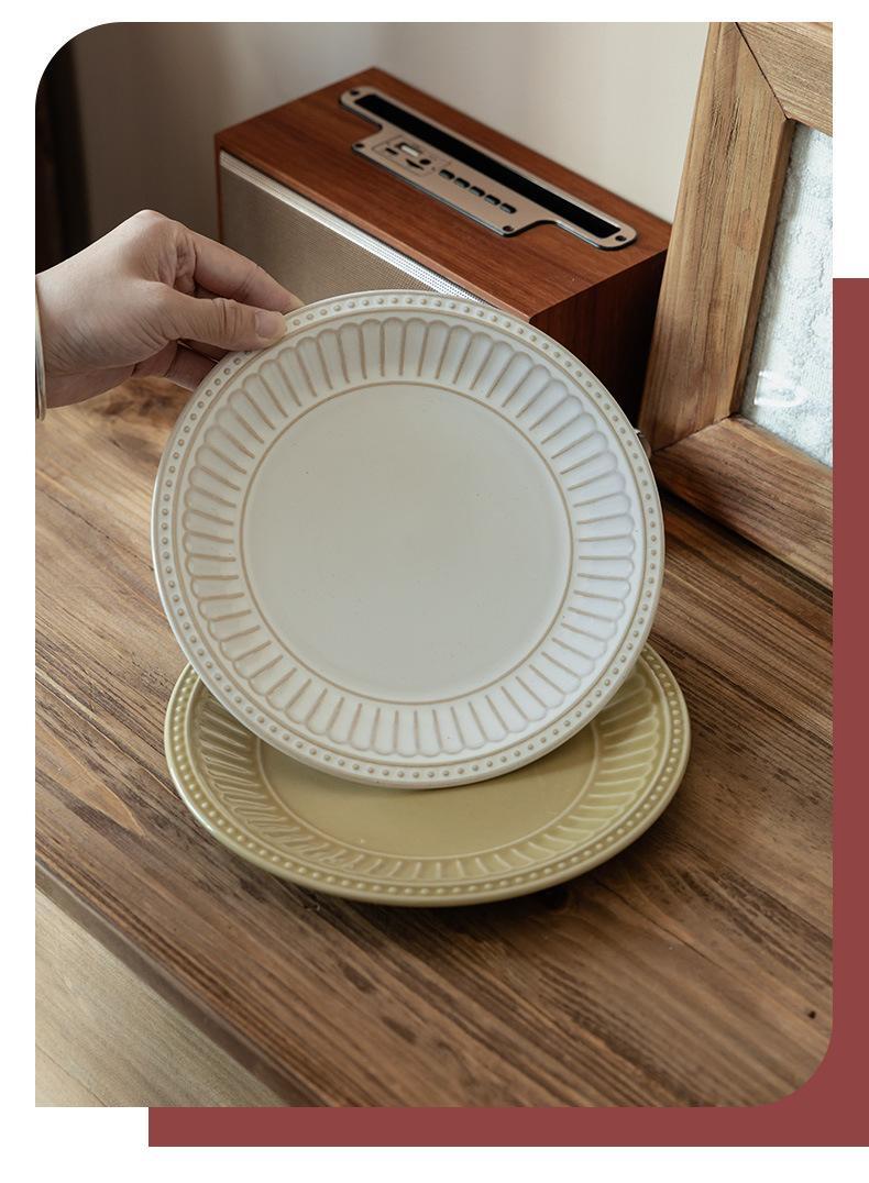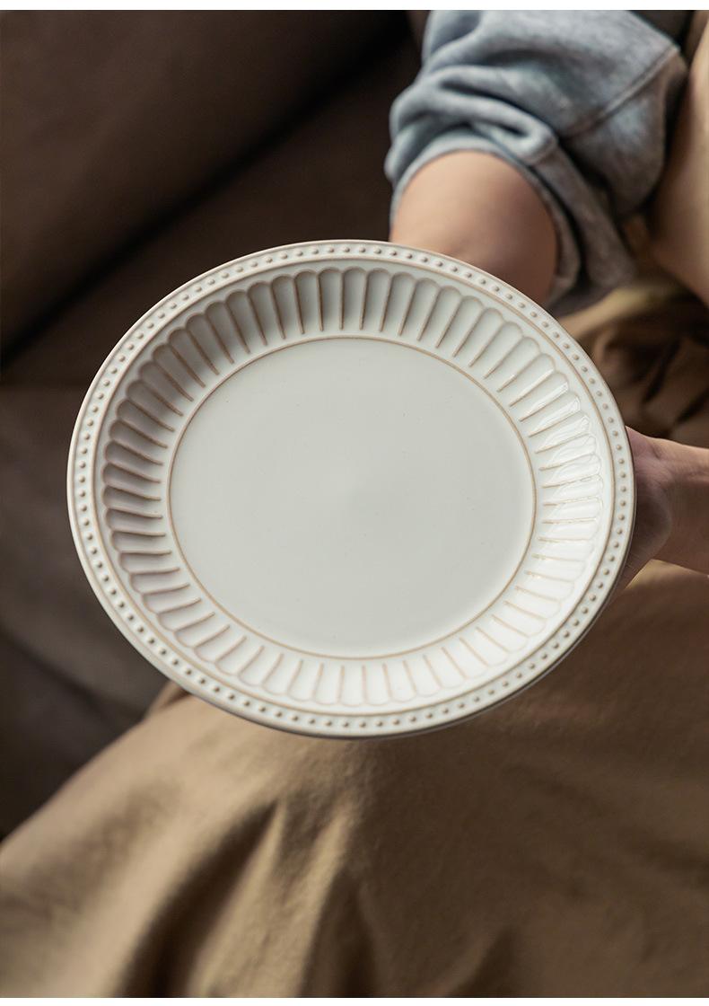 Plato redondo de cerámica, exquisito plato poco profundo en relieve, plato doméstico, restaurante, plato de postre de alto valor, vajilla, plato al por mayor