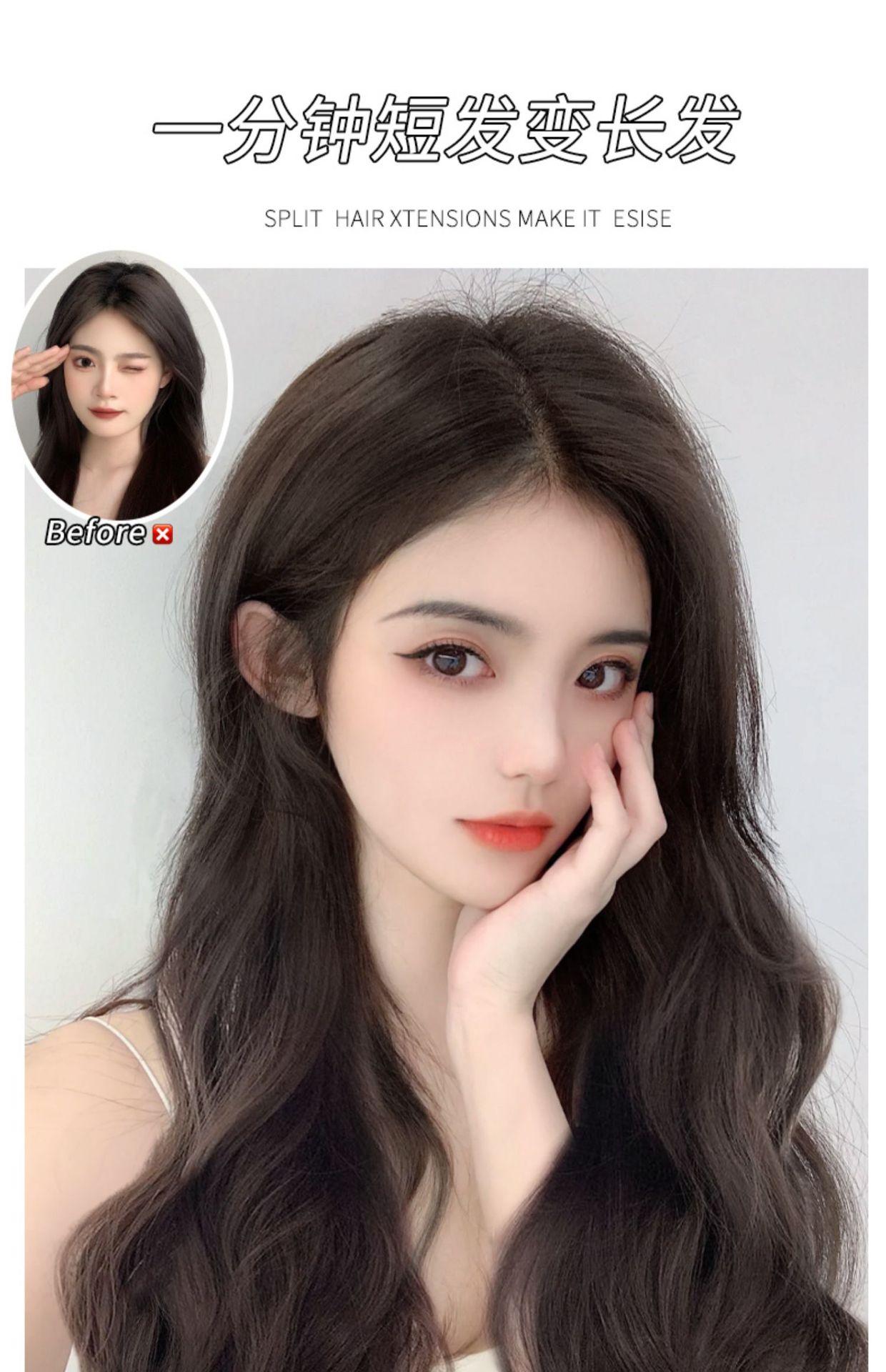 Peluca de mujer de cabello largo de una pieza, peluca de cabello largo y rizado, pieza de peluca invisible y sin rastro, ramita de cabello de tres piezas, cabello largo y rizado, ondas grandes