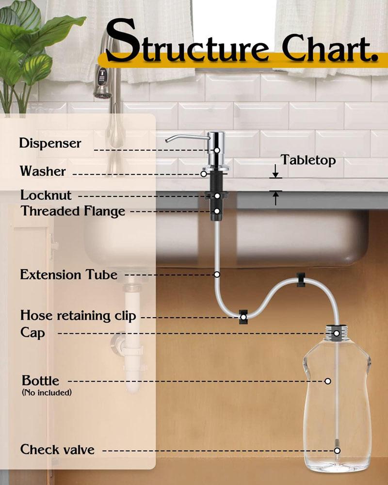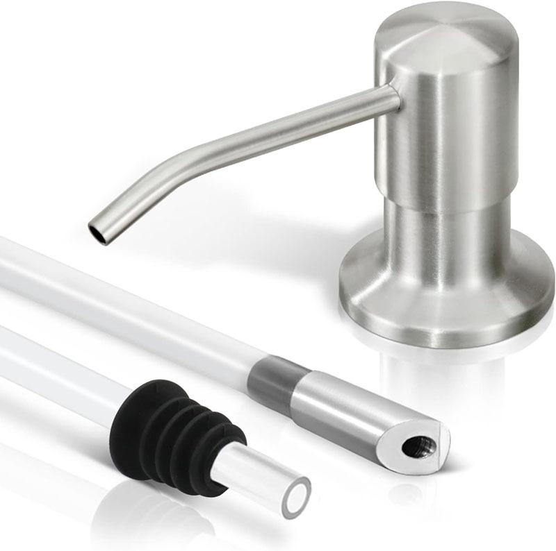 ✨ 【Introducción Multifuncional y Atractiva】El exquisito dispensador de jabón para fregadero de níquel cepillado complementa la mayoría de las decoraciones de cocina, ayudándole a crear un estilo clásico atemporal. El tubo de extensión de 51 pulgadas proporciona un rellenado menos frecuente, lo que lo convierte en un buen ayudante para la cocina.