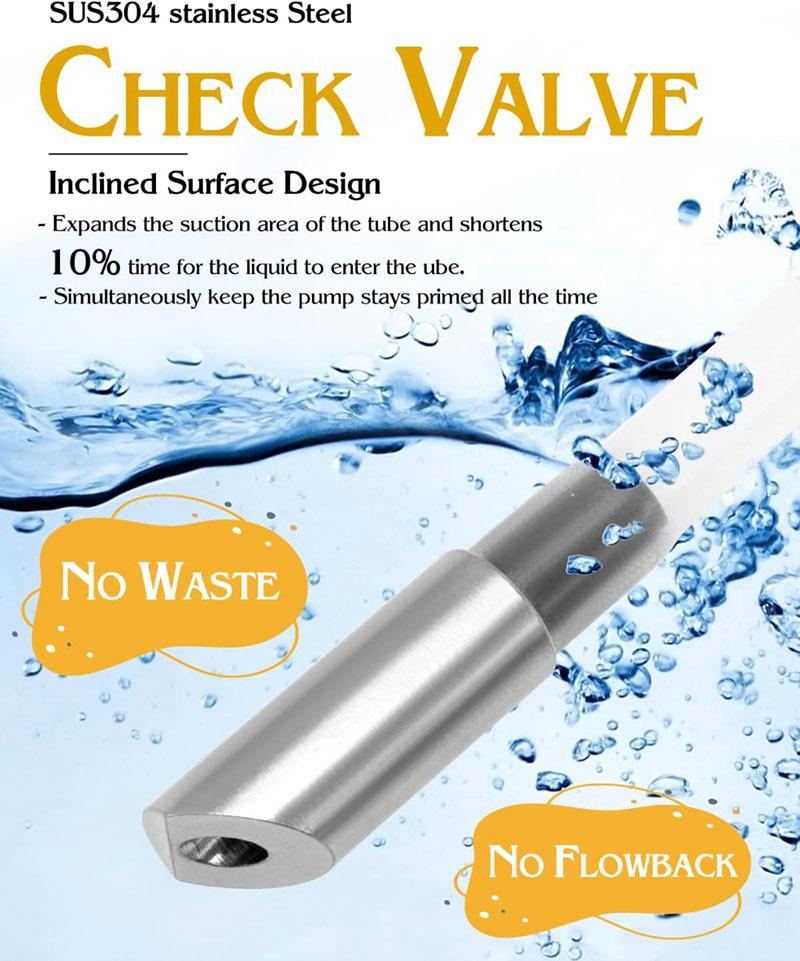 🔮 【Alta Calidad, Duradero】 Bomba autocebante tipo push de acero inoxidable 304, tubo de extensión de silicona de grado alimenticio y válvula de retención metálica en el extremo del tubo, fiable y duradera, con un rendimiento funcional seguro y confiable.
