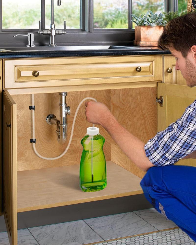 🍐 【Compatibilidad Universal】Equipado con 2 tapas, este dispensador de jabón de cocina con tubo de extensión se adapta a la mayoría de las aberturas de contenedores.