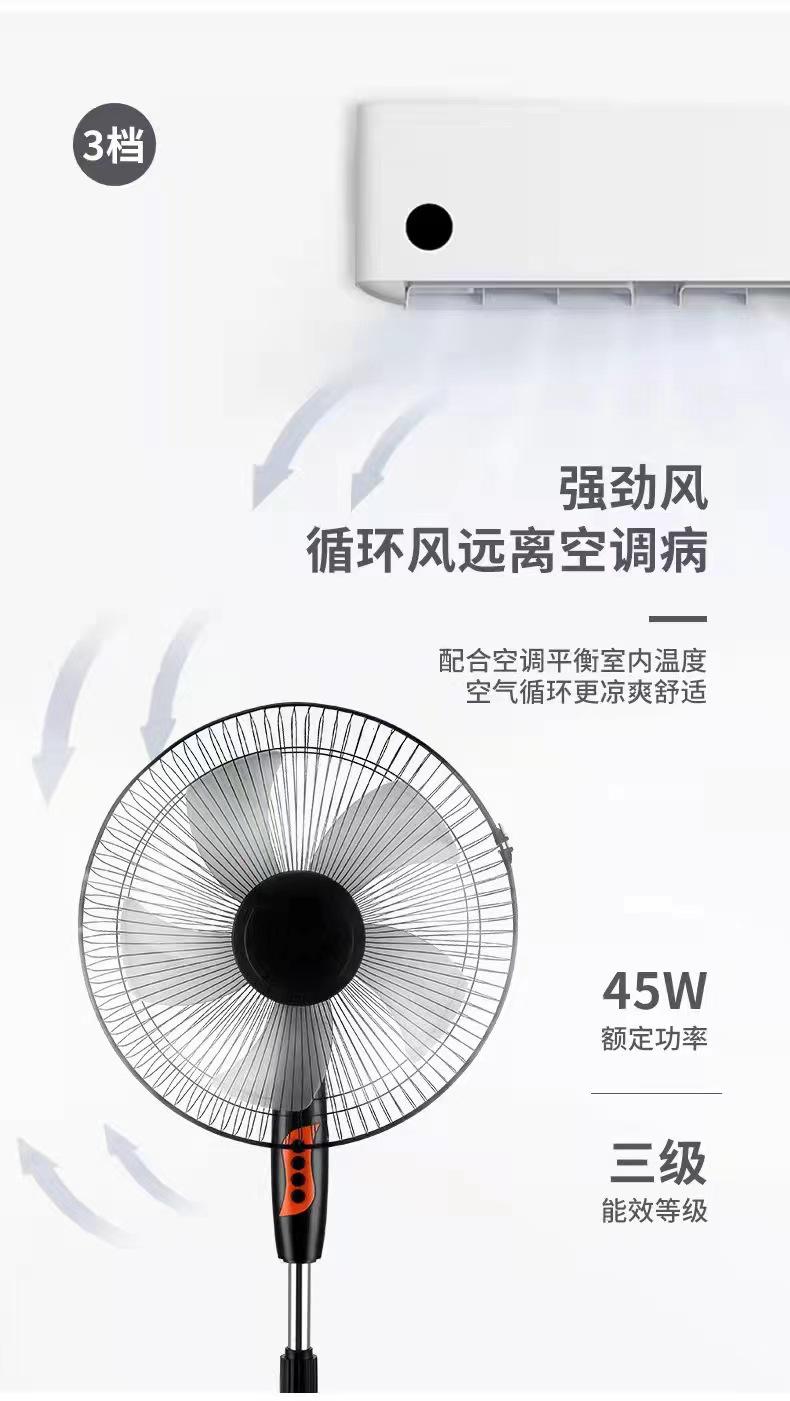 Venta al por mayor de fábrica Ventilador eléctrico doméstico 16 pulgadas Silencioso con cabezal oscilante Ventilador de pie Regalo Ventilador de pie vertical Dropshipping transfronterizo