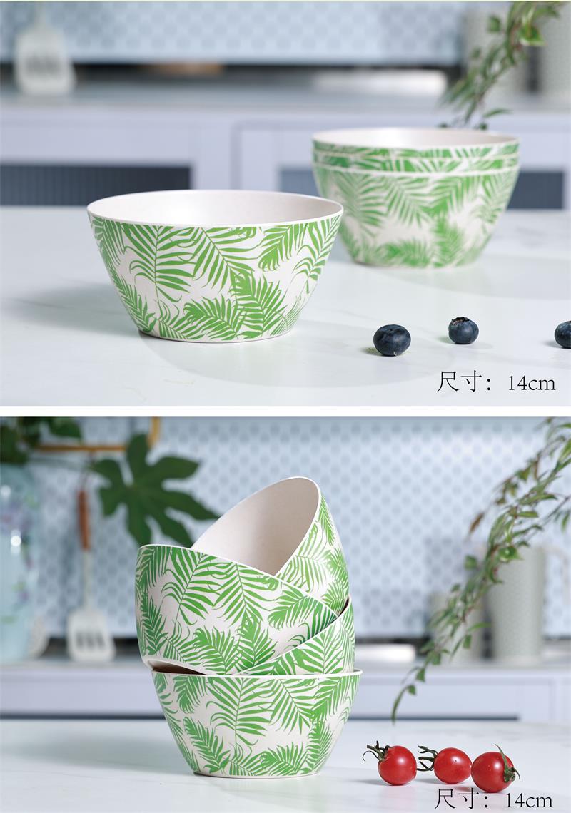 Cuenco multiusos para uso diario, vajilla sencilla y moderna para el hogar, vajilla con estampado de plantas verdes frescas.