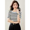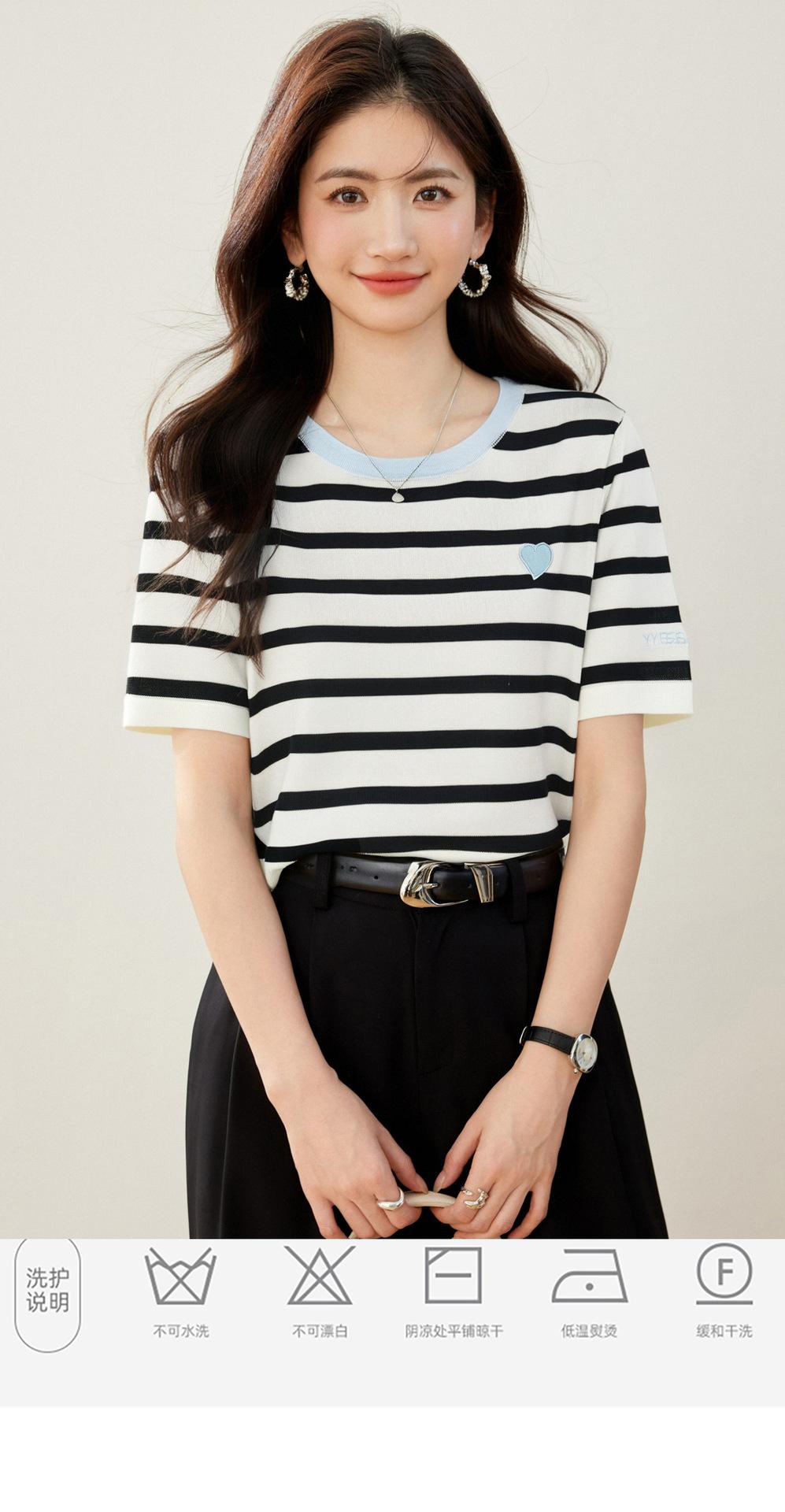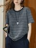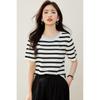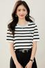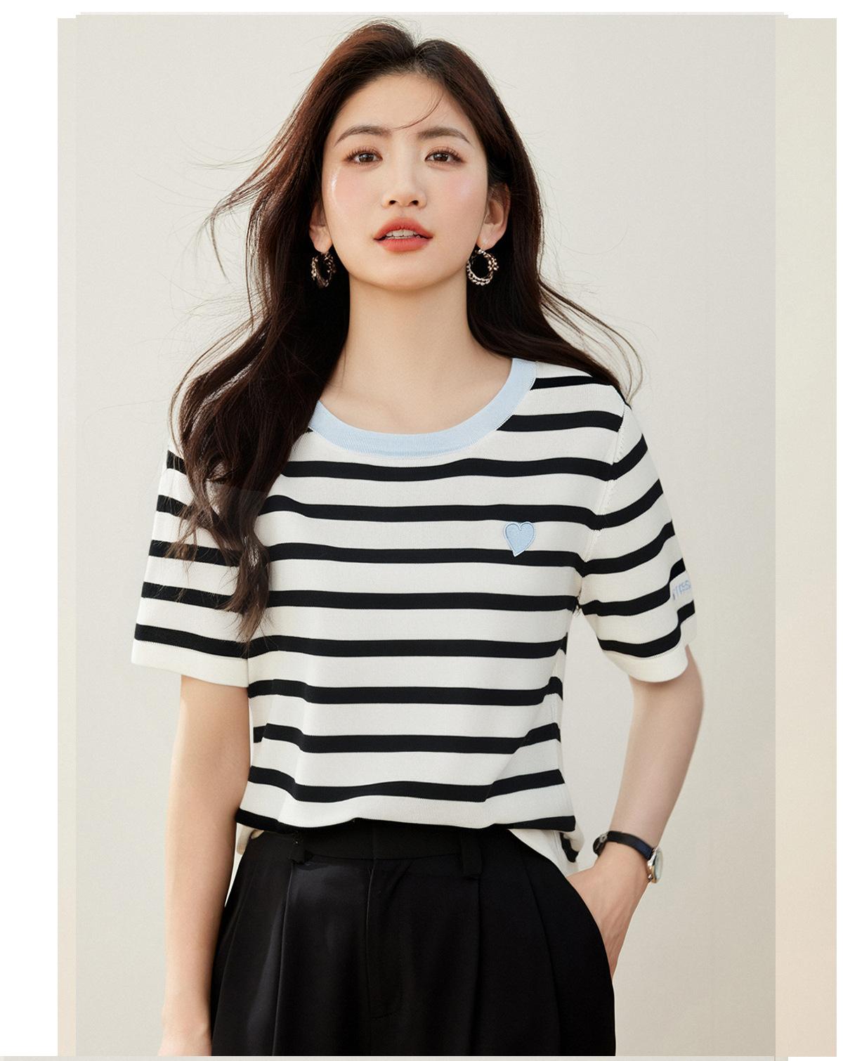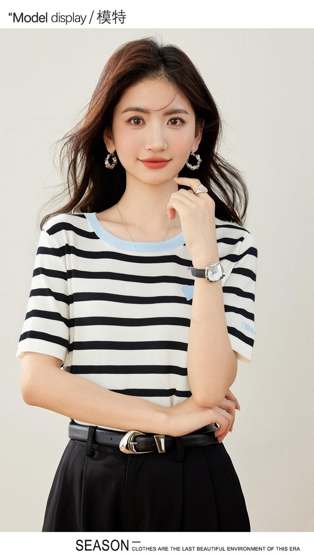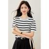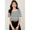 Camiseta de manga corta con cuello redondo y diseño a juego para mujer, de moda, verano 2025, nueva camiseta a rayas de colores a juego, holgada y adelgazante.