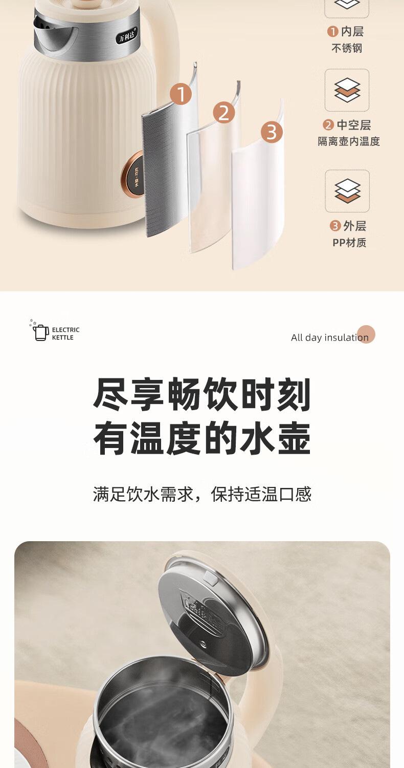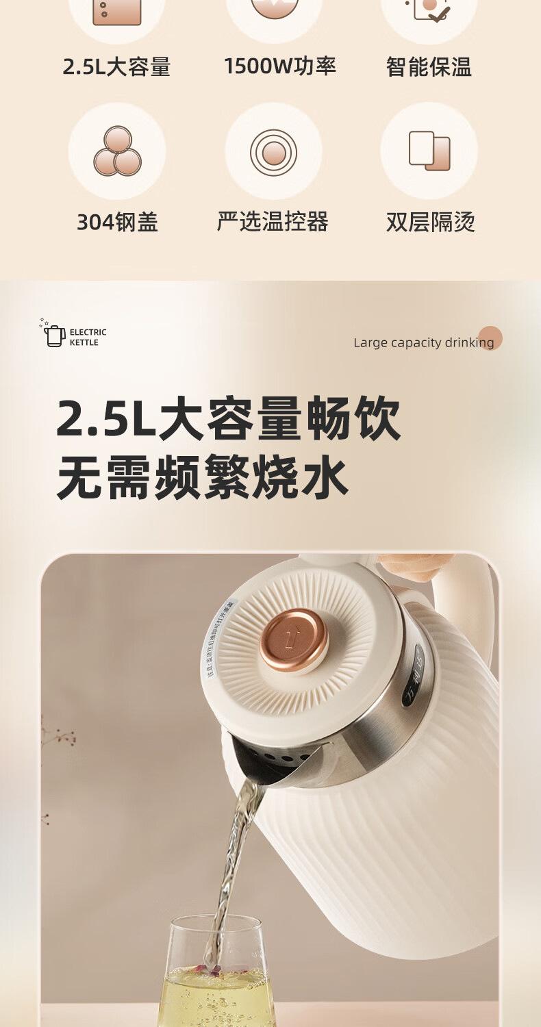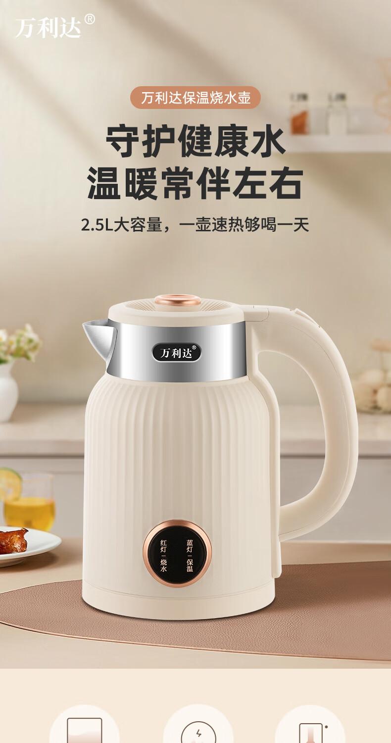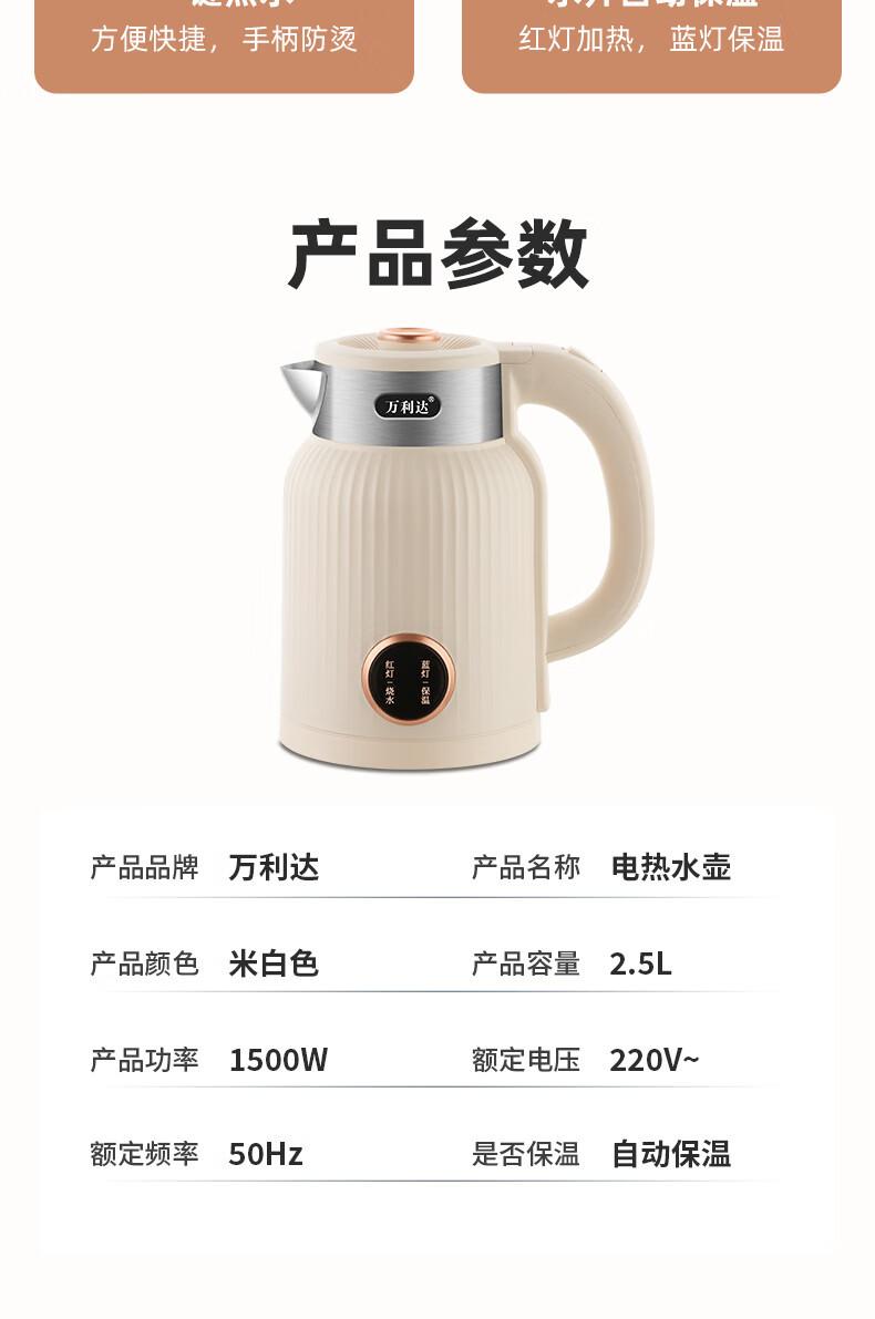 Hervidor eléctrico Vanlida de 2,5 l, gran capacidad, temperatura constante, apagado automático, de acero inoxidable