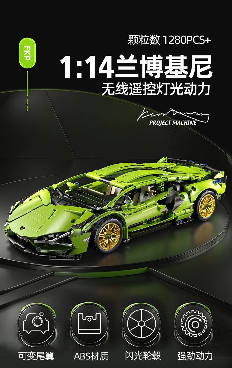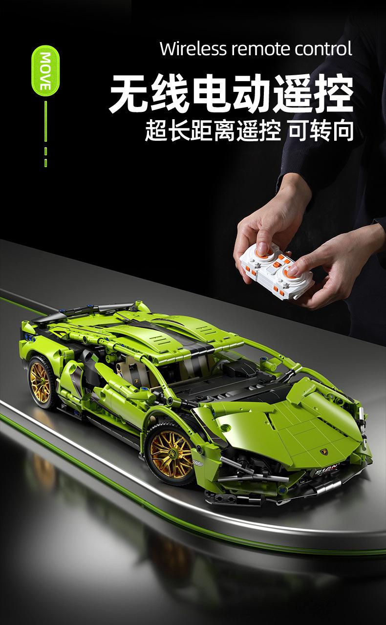 Coche de Carreras a Control Remoto Compatible con Bloques de Construcción Lego Coche Deportivo Lambo Porsche Bugatti Modelo Educativo de Montaje para Niños