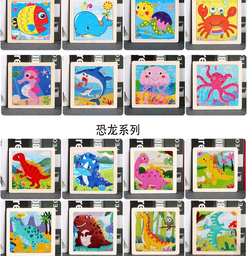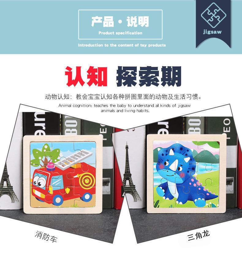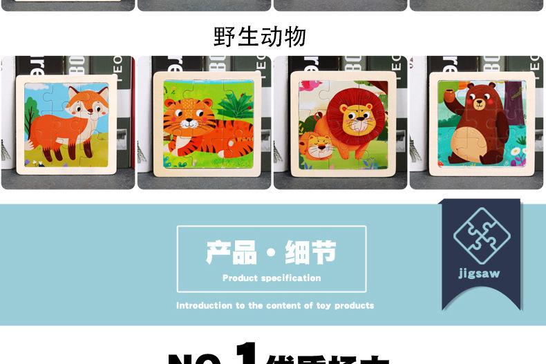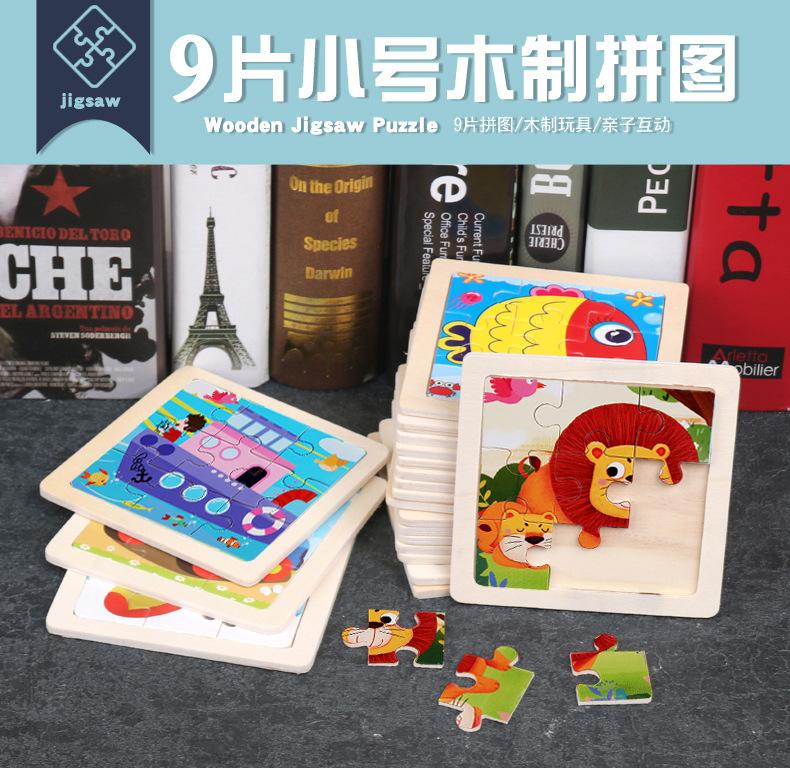 Entrenamiento de Concentración de Fábrica Educación Temprana Bloques de Construcción 1-3 Años Juguetes Educativos de Madera Animales de Dibujos Animados Nueve Rompecabezas de Madera
