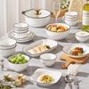 Color bajo cubierta Nuevo Juego de Tazón y Plato de Cerámica para Uso Doméstico, Tazones y Platos de Cerámica de Alto Valor, Platos para Arroz, Tazones Simples para Fideos, Tazones para Sopa