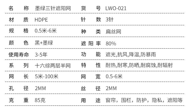 Lwo-021 red de sombra de tres pines verde oscuro transpirable protector solar red de sombra material PE resistente al frío pantalla plana venta al por mayor