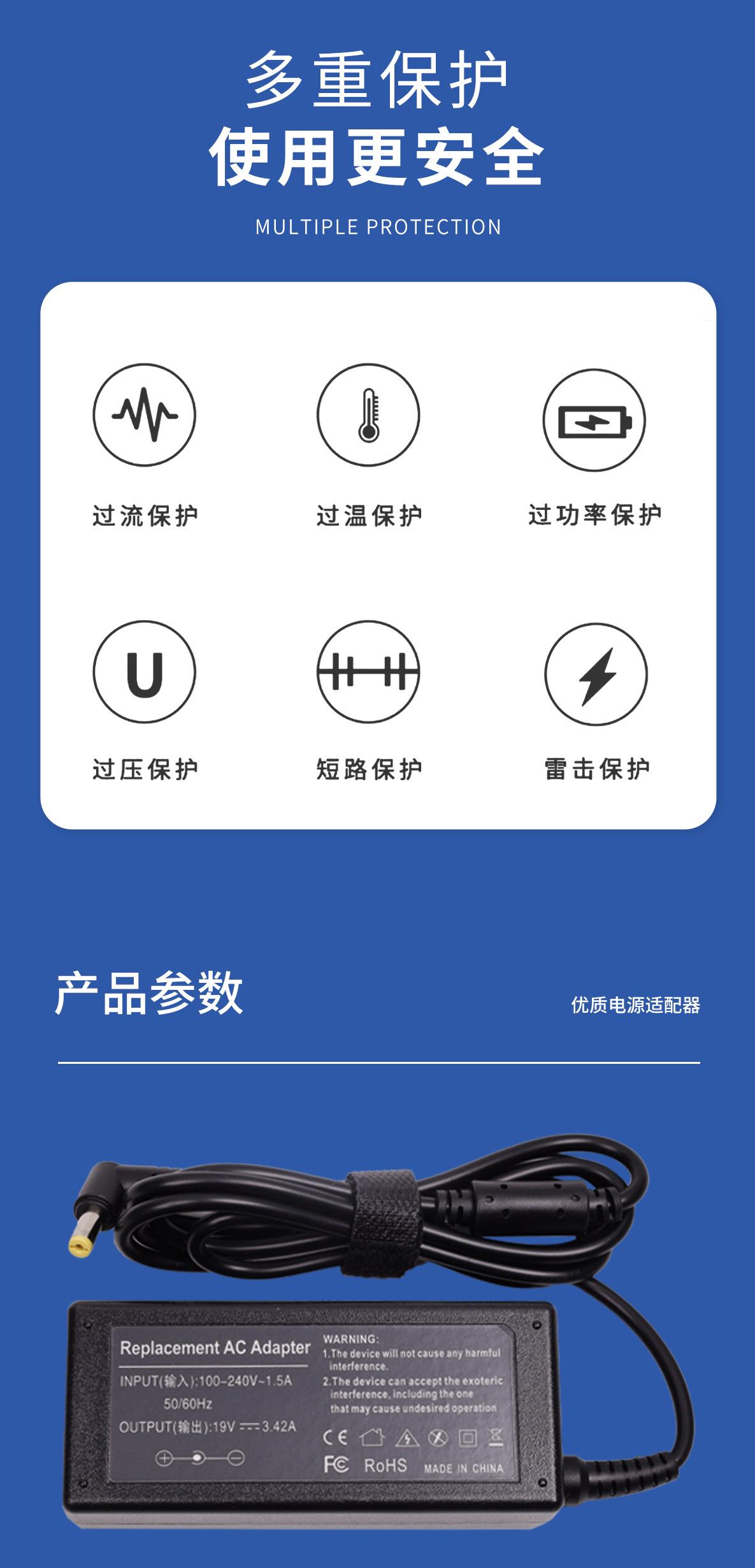 Aplicable al adaptador de corriente Acer 19V3.42A 5.5*1.7 cargador para computadora portátil adaptador para computadora portátil