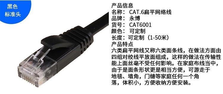 Seis tipos de cable de red plano sin blindaje, cobre libre de oxígeno, ultra seis tipos de cable de red doméstico, cable de red de banda ancha gigabit terminado