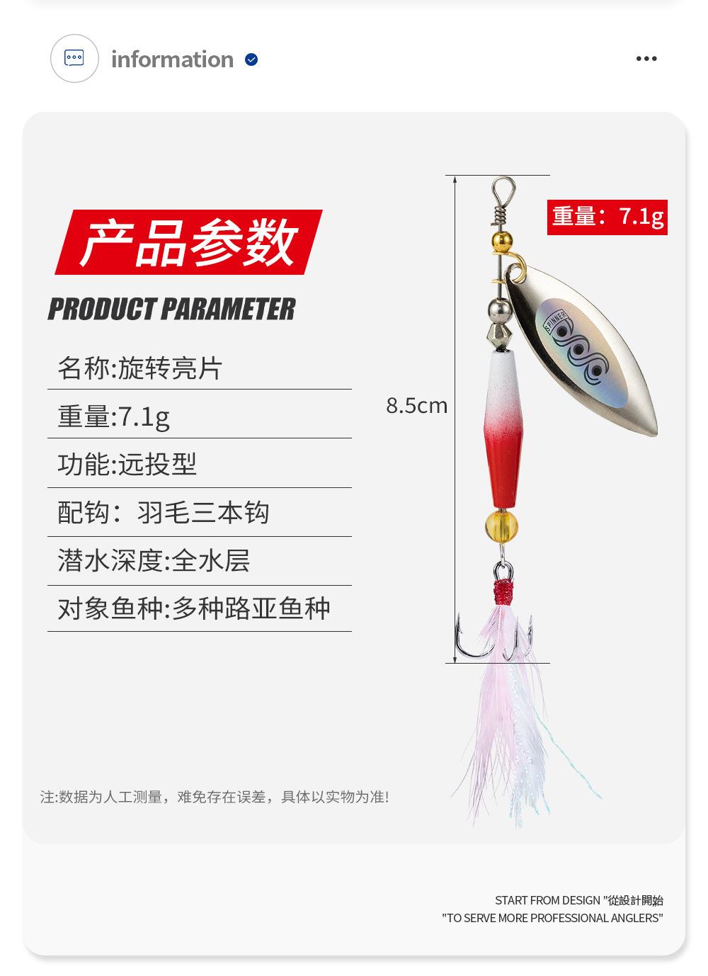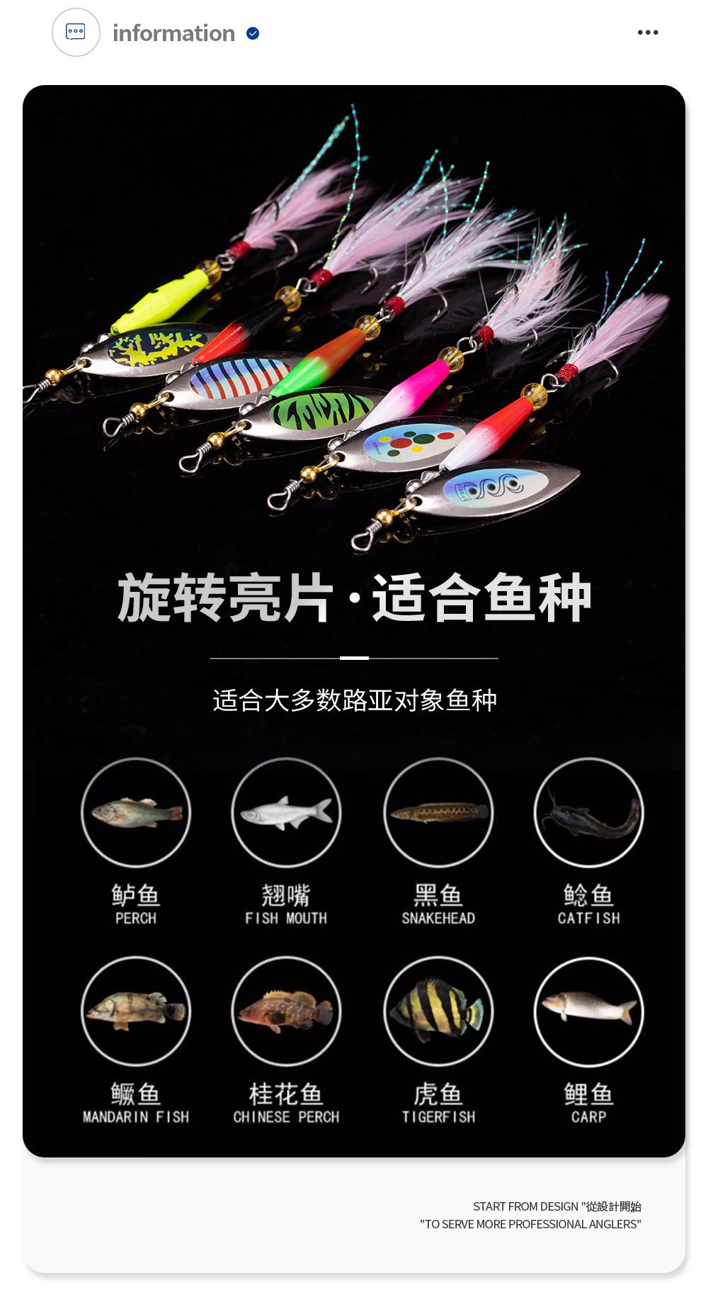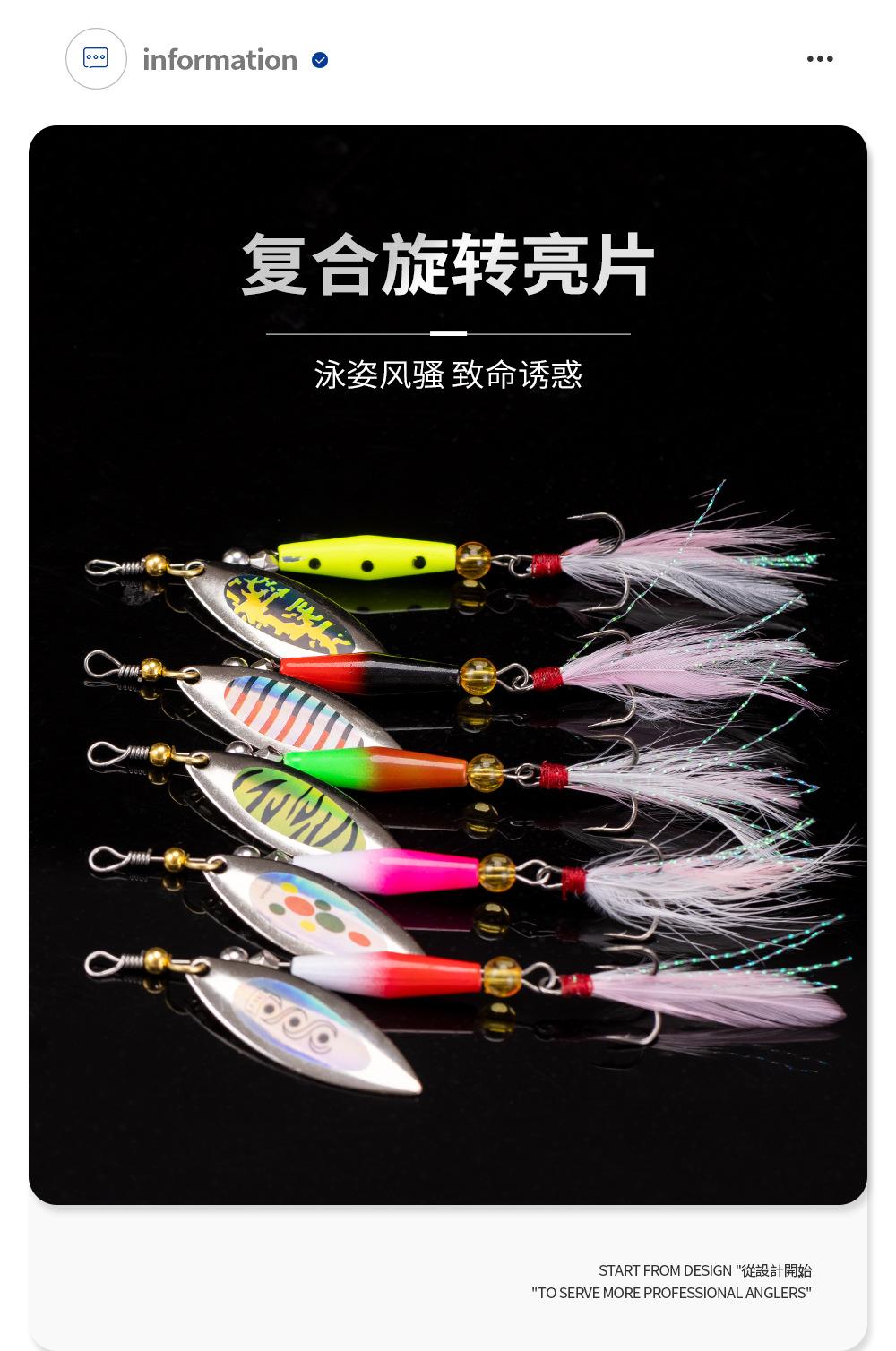 Seis Gatos | Pluma Transfronteriza Lentejuelas Giratorias 10g 7g Lentejuelas Metálicas Señuelo Señuelo Hoja de Sauce Doble Cebo para Peces