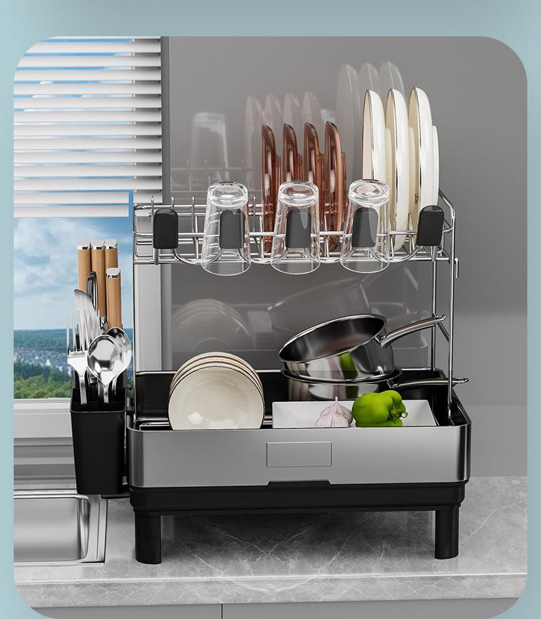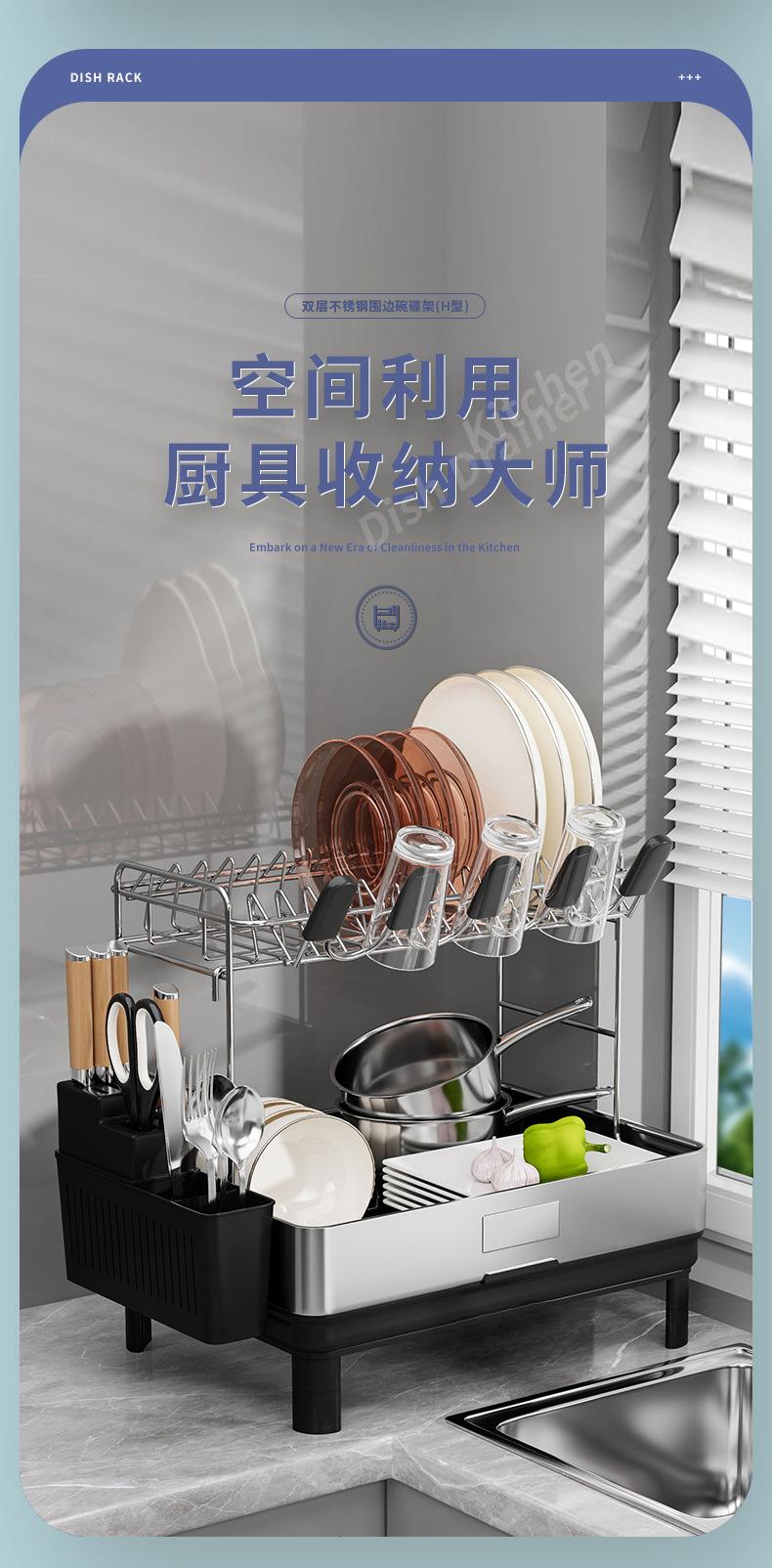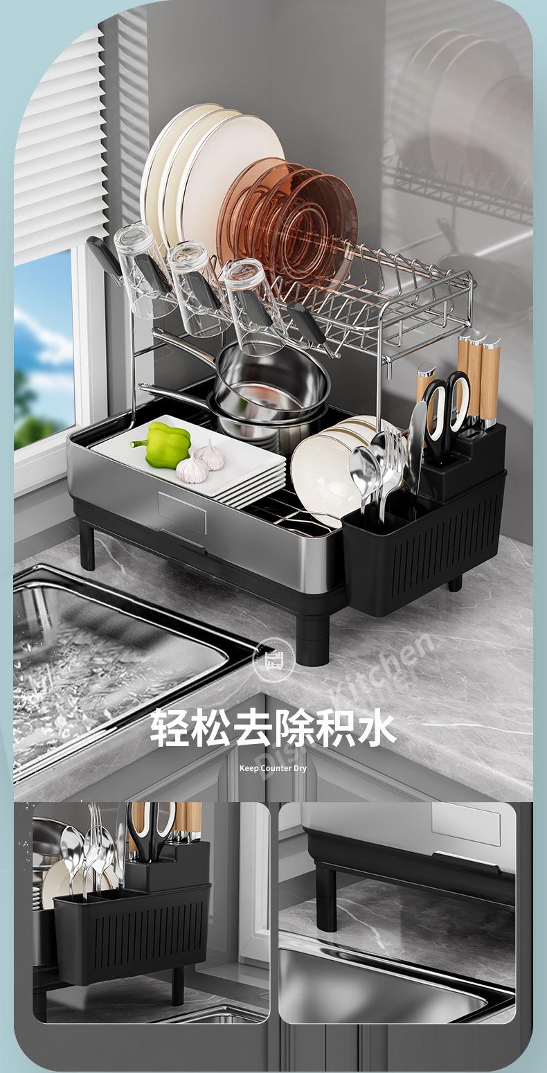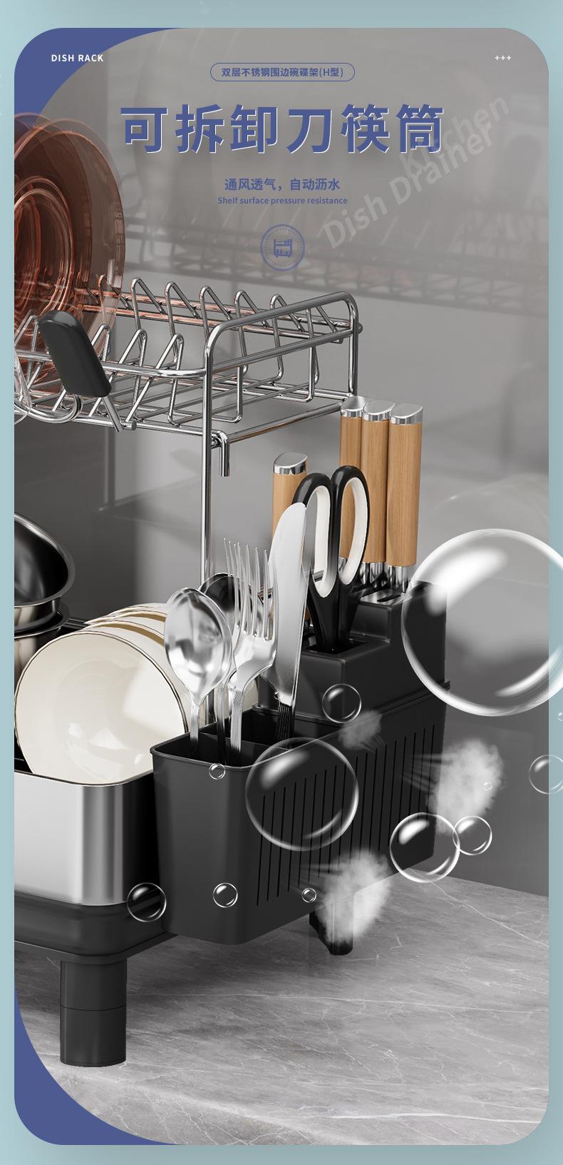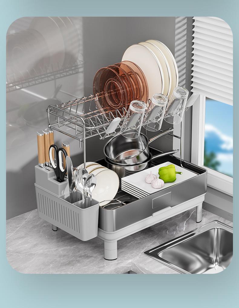Estante de Almacenamiento de Cocina de Acero Inoxidable Transfronterizo Escurridor de Platos y Vasos Multifuncional Estante para Tazones Caja de Almacenamiento para Tazones y Palillos Alacena