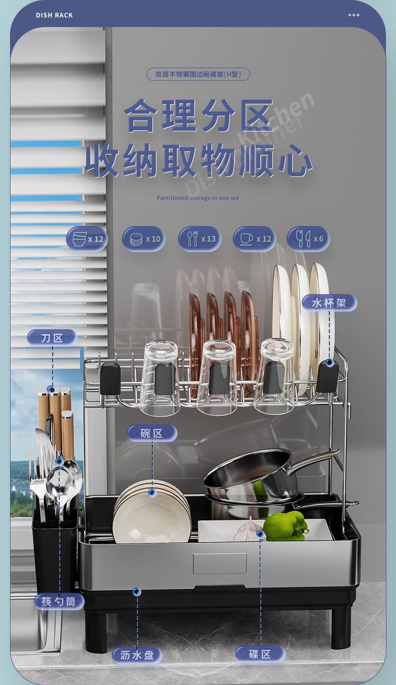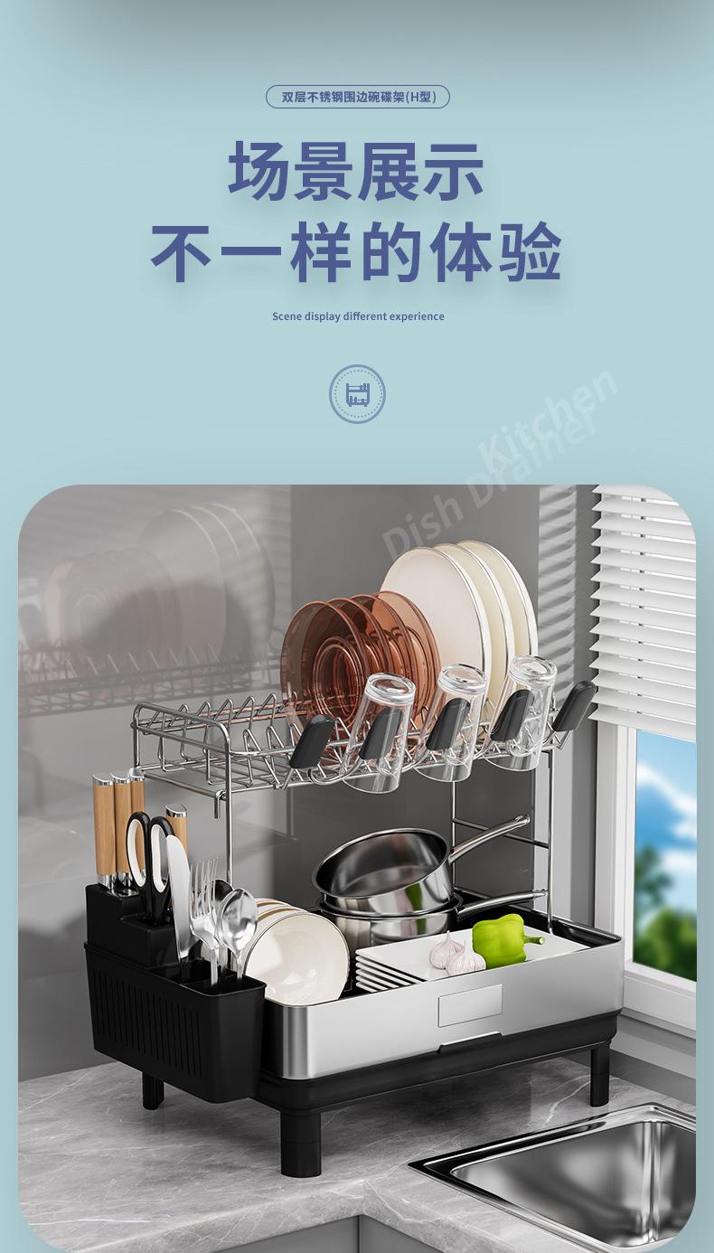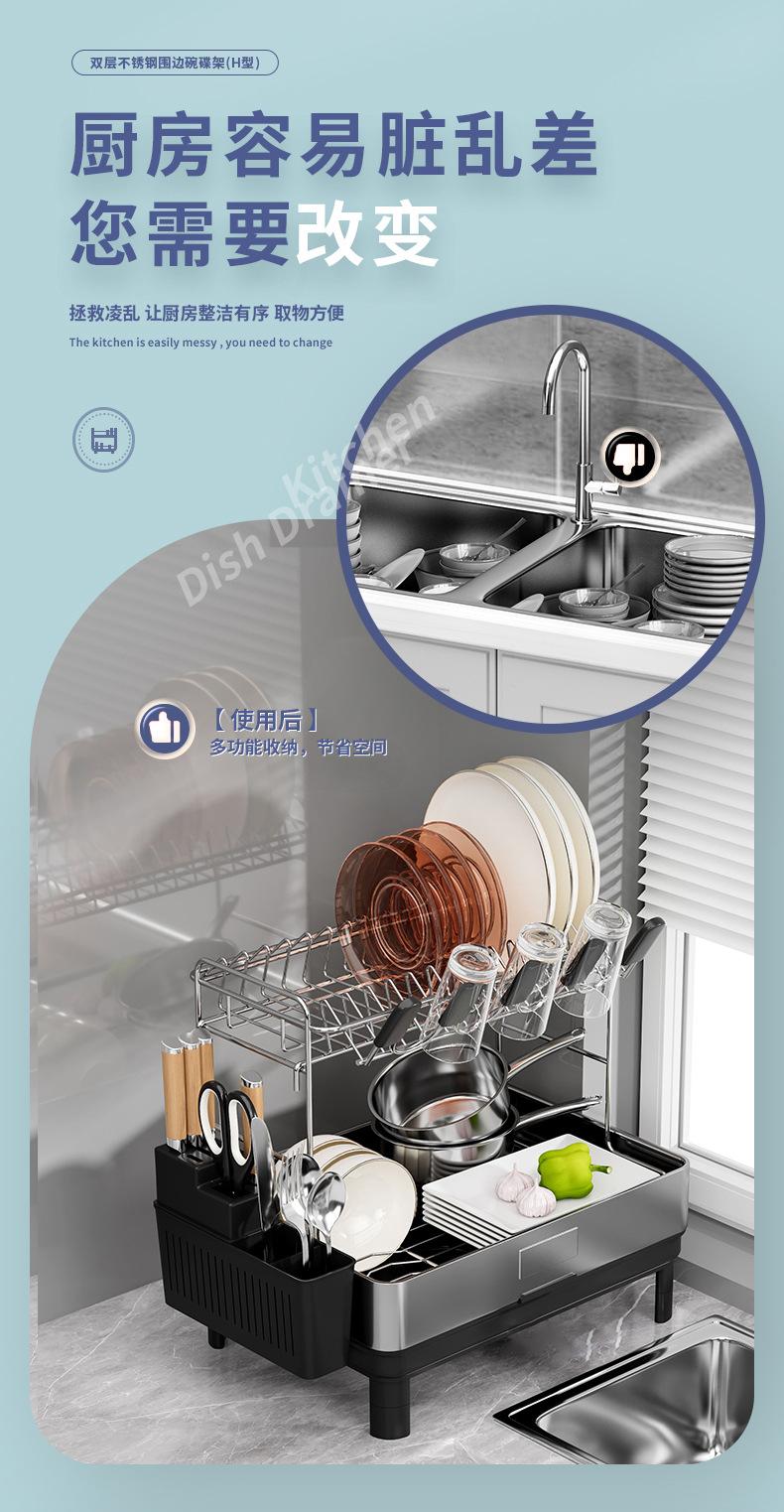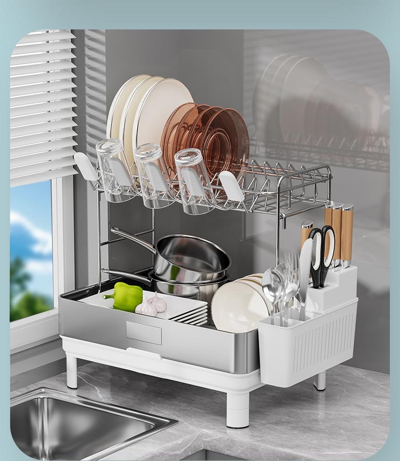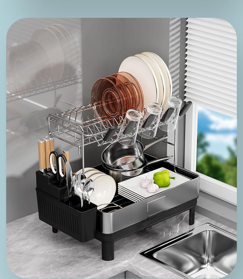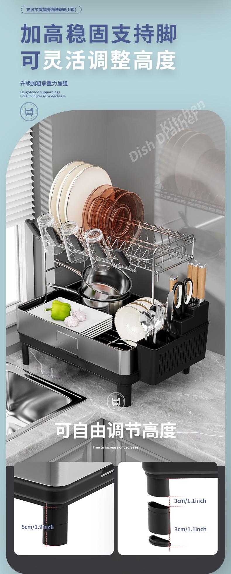 Estante de Almacenamiento de Cocina de Acero Inoxidable Transfronterizo Escurridor de Platos y Vasos Multifuncional Estante para Tazones Caja de Almacenamiento para Tazones y Palillos Alacena
