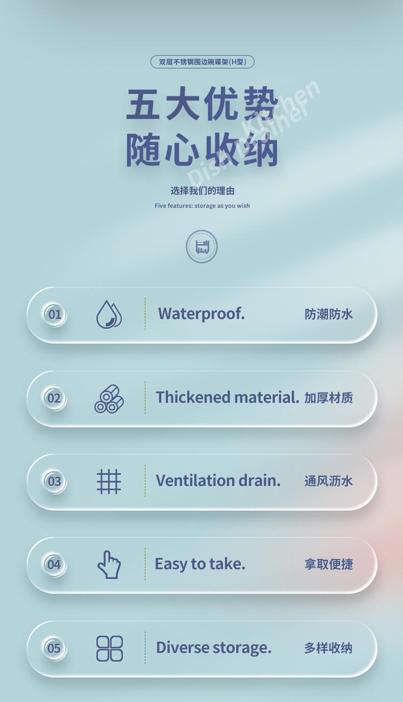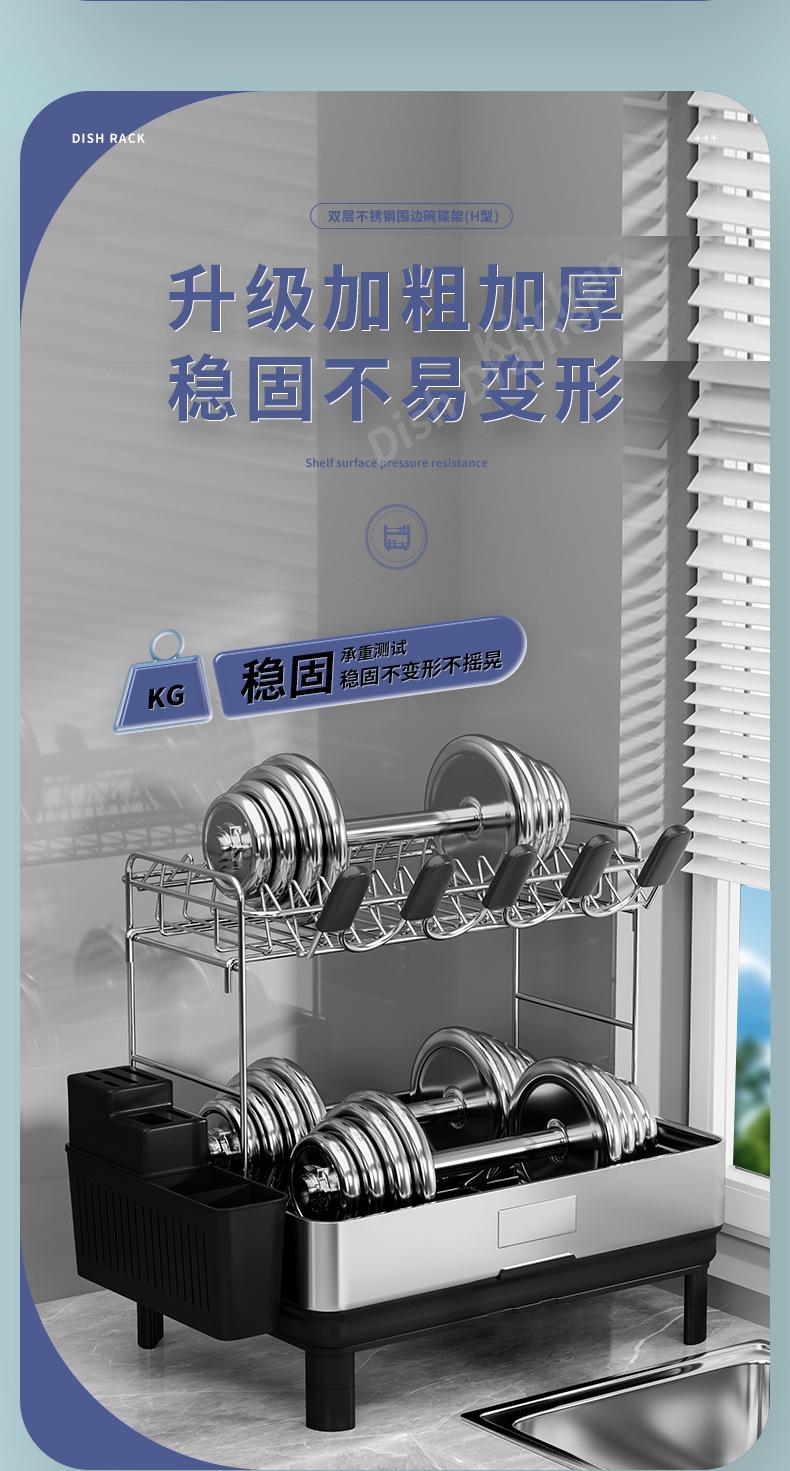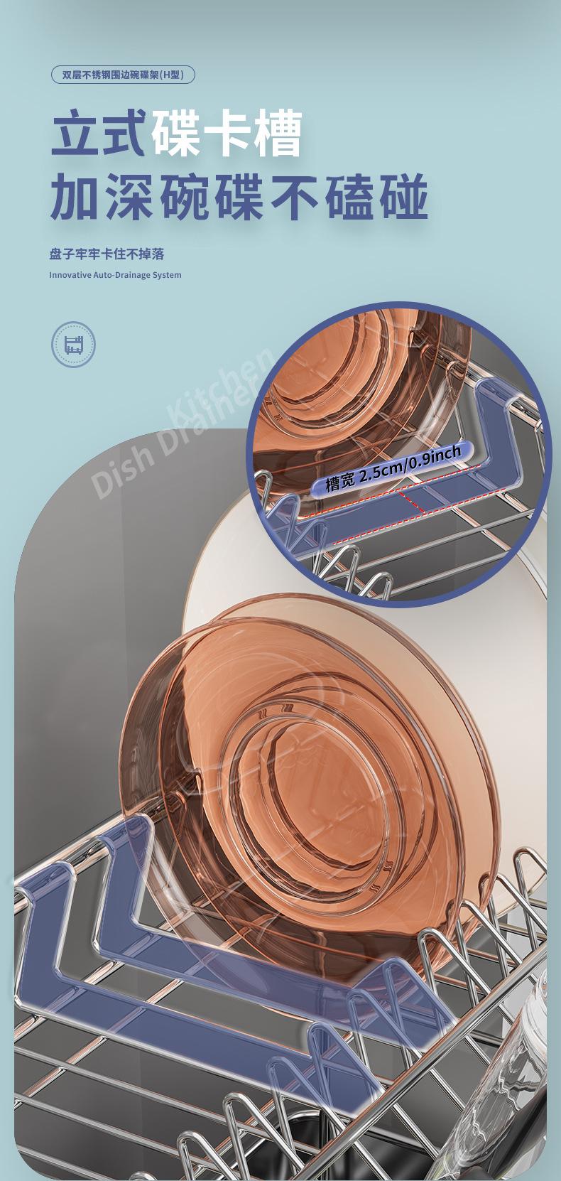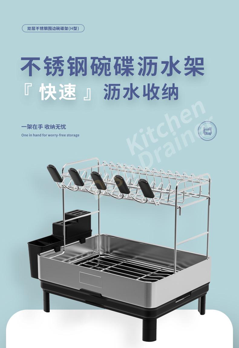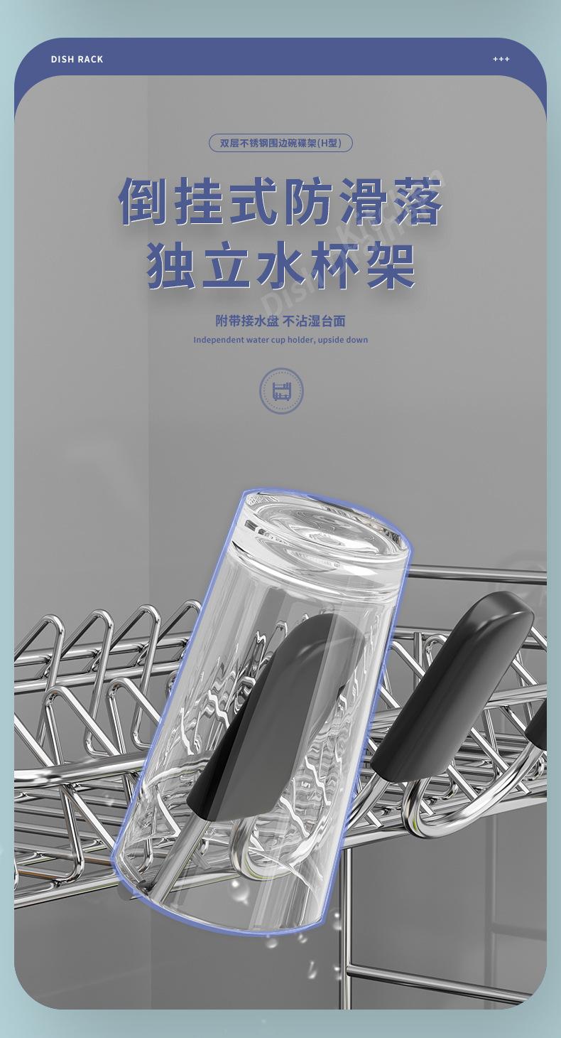 Estante de Almacenamiento de Cocina de Acero Inoxidable Transfronterizo Escurridor de Platos y Vasos Multifuncional Estante para Tazones Caja de Almacenamiento para Tazones y Palillos Alacena